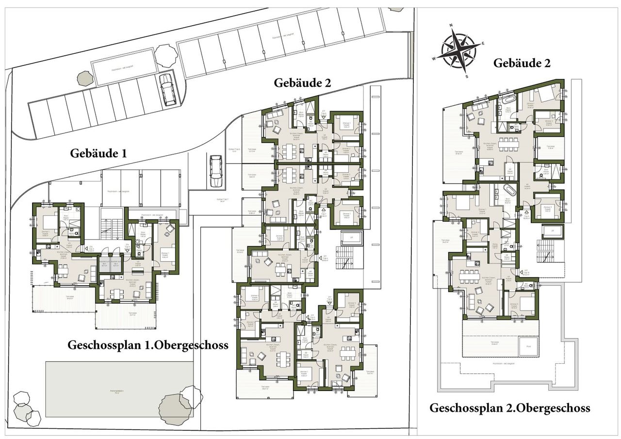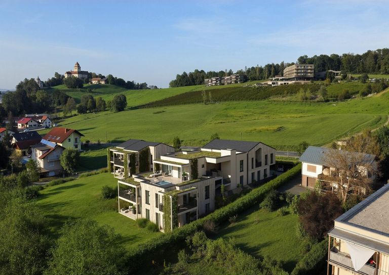 Vollkommen harmonisch und liebevoll wurde diese Wohnanlage bis ins kleinste Detail geplant und durchdacht, wodurch eine stimmiges Gesamtbild entsteht. Auch ringsum wird eine herrliche grüne Oase erschaffen, so werden beispielsweise die Dachflächen inklusive der Carportdächer der Wohnanlage extensiv begrünt, um das natürliche Ambiente zu unterstreichen.
