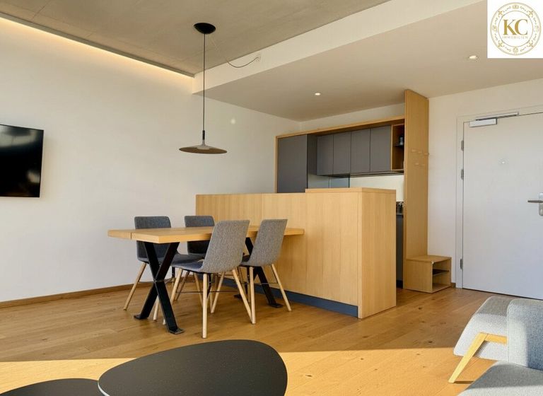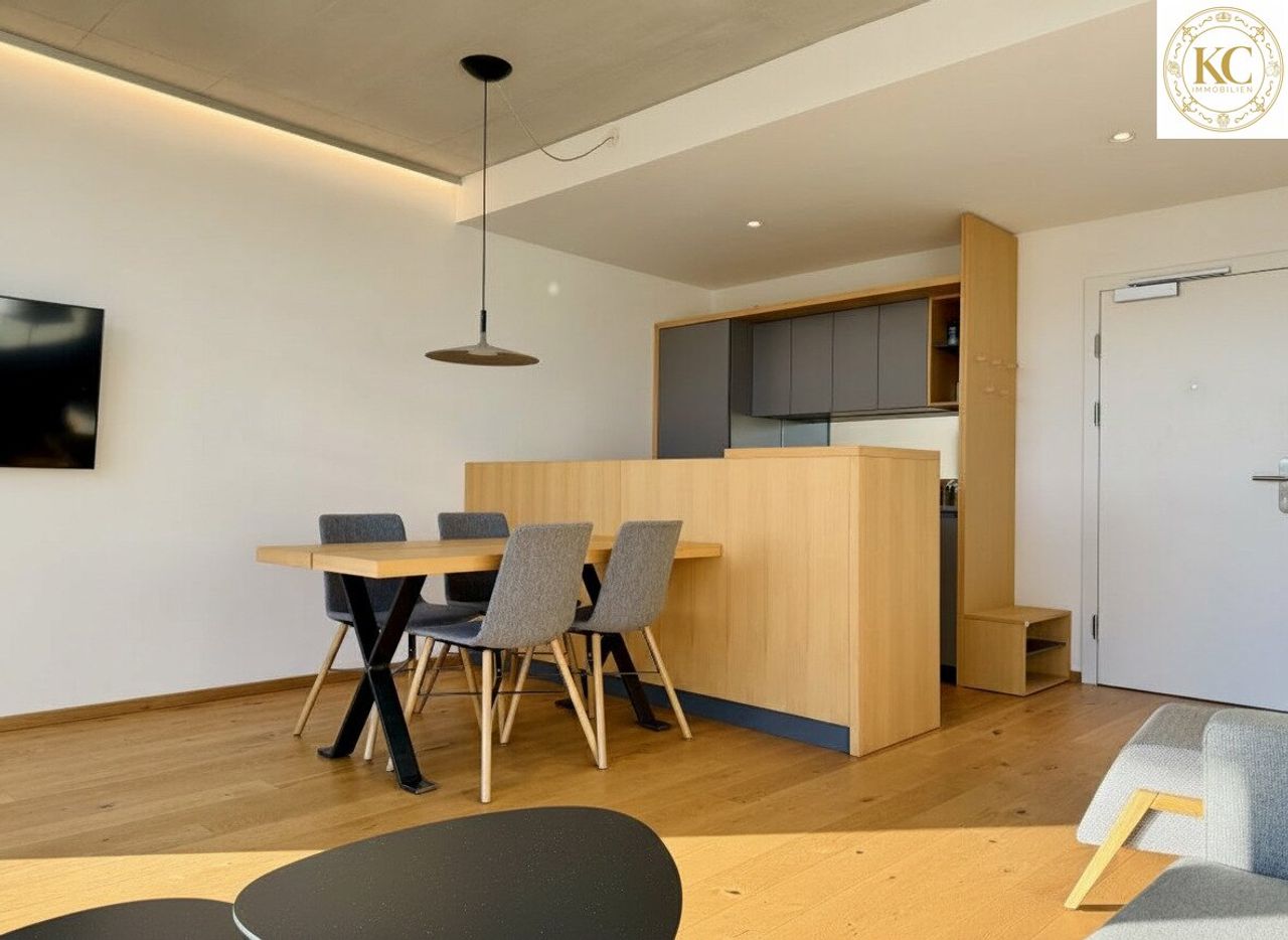 Das rund 76 m² große Apartment verfügt über einen lichtdurchfluteten Wohn-Essbereich mit moderner, hochwertiger Küche und Terrassenzugang. Weiters stehen ein Schlafzimmer mit Doppelbett, ein flexibel nutzbarer Zusatzraum (Büro/Gast- oder Kinderzimmer), ein elegantes Badezimmer mit Doppelwaschbecken, Badewanne und Walk-In-Dusche sowie ein Abstellraum zur Verfügung. Die Einrichtung ist edel, modern, maßgefertigt und im Kaufpreis inkludiert.