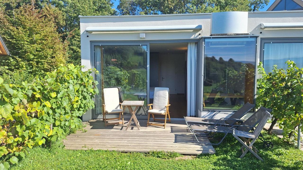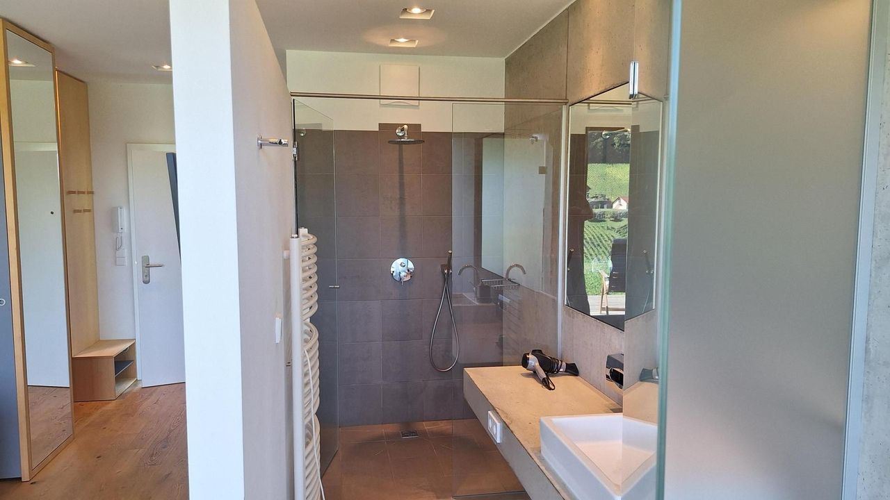 Das Apartment wurde modern und geschmackvoll eingerichtet – hochwertig ausgestattet, lichtdurchflutet und mit direktem Zugang zu Ihrem eigenen Gartenbereich. Die Terrasse bietet Platz zum Entspannen und Genießen – bei Sonne, Vogelgezwitscher und einem Glas südsteirischem Wein.