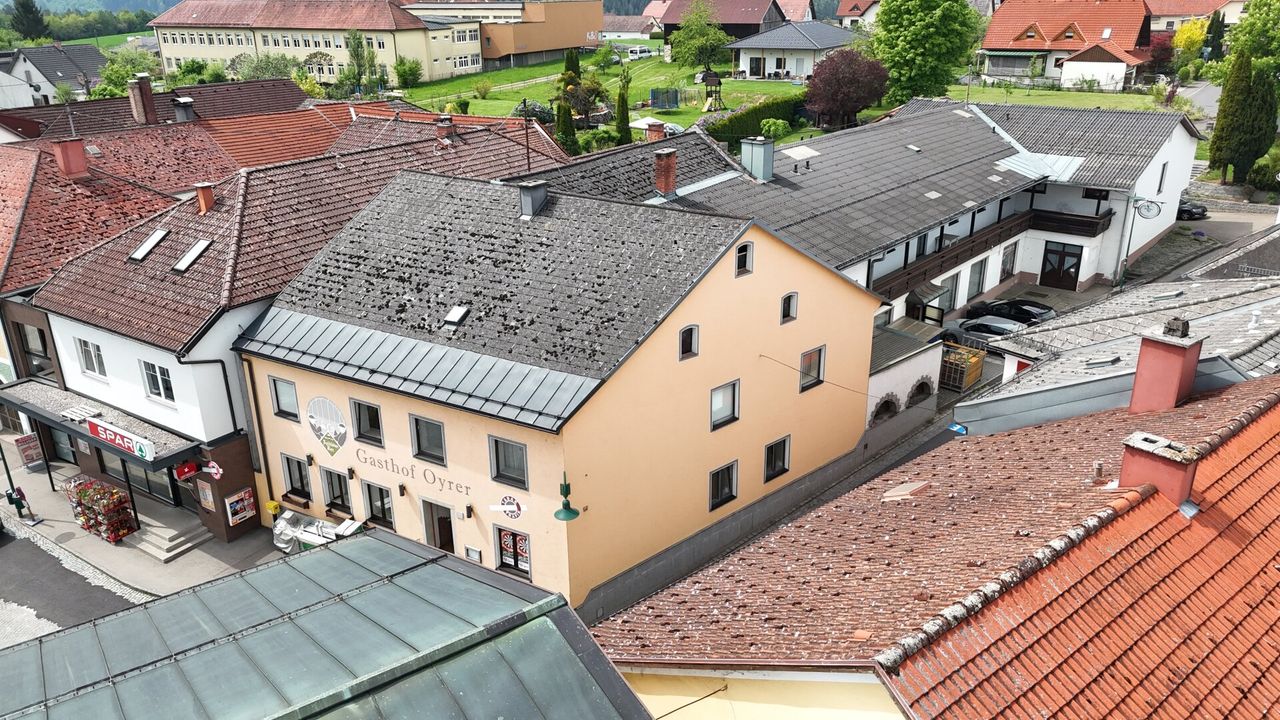 Diese Immobilie mit rund 1.660 m² Nutzfläche befindet sich im Zentrum / am Marktplatz von Gutau und wird derzeit im Erdgeschoß auf rund 721 m² als gut frequentierter und einträglicher Gastgewerbebetrieb genutzt. Im rund 578 m² großen Obergeschoß befinden sich zwei große Wohneinheiten mit ca. 206 m² und ca. 127 m² sowie 10 Fremden- / Monteurzimmer mit ca. 172 m² . Im ca. 360 m² großen Kellergeschoß befindet sich neben diversen Kellerräumlichkeiten auch eine Bar / Diskothek. Die detaillierte Raumaufteilung entnehmen Sie bitte den angehängten Plänen und Raumübersichtstabellen.