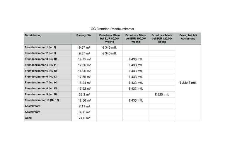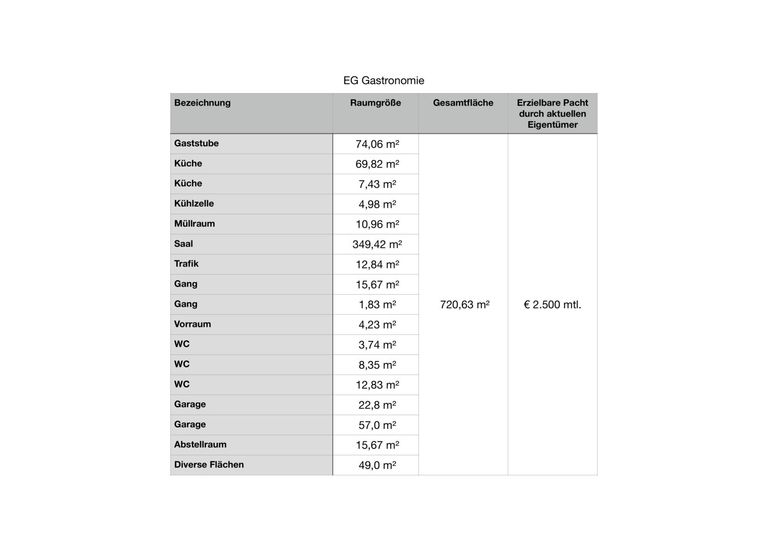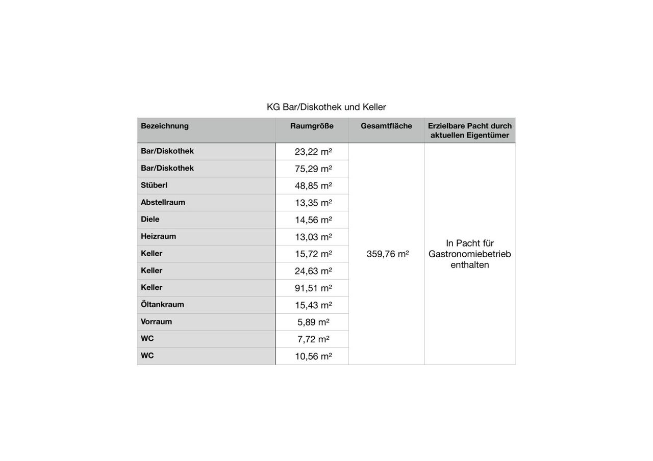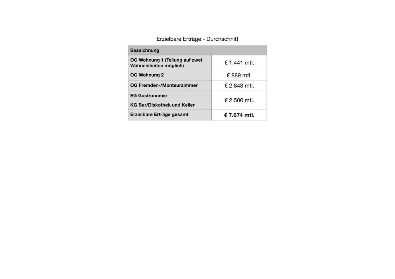 Verpachtung des Gastronomiebetriebs und selbständige Bewirtschaftung der Zimmer und Wohnungen mit oder ohne eigenem Wohnbereich. Bei dieser Variante stünde der aktuelle Besitzer bereits als Pächter für die nächsten fünf Jahre zur Verfügung, indem er entweder monatlich Pacht bezahlt oder die auf den Pachtzeitraum hochgerechnete Pacht vom Kaufpreis abzieht.