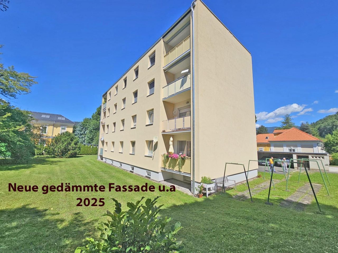 Verkauft Leoben- Göß, beste Wohnlage. Das Wohnhaus wurde 2025 neu saniert: Aussenfassade, Einleitung der Fernwärme, Kellerdecken wurden gedämmt. Die Sanierungskosten sind bereits im Kaufpreis enthalten. Keine zusätzlichen Darlehen !! vorangegangene Renovierungen: 2001 Dachrenovierung, Eingang. Ihre Wohnung besteht aus: großes Wohnzimmer mit Ausgang auf die Loggia, Küche, 2 Schlafzimmer, Bad mit Dusche, WC, Vorraum Abstellraum, Die Kunsstoffenster stammen ca. aus 2001, Das Bad wurde ca. 2001 renoviert. Die Wohnungseingangstüre mit Brandschutz und Einbruchschutz stammt aus 2015 . Die Wohnnutfläche beträgt ca. 82 m² Pakettböden, Zur Wohnung gehört ein großes Kellerabteil, gemeinschaftliche Kellerräume, ein Carport. An die Carports angebaut ist ein Fahrradabstellraum....