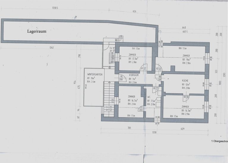 Wohnküche, 4 Schlafzimmer, Wintergarten, Bad mit Dusche und WC,