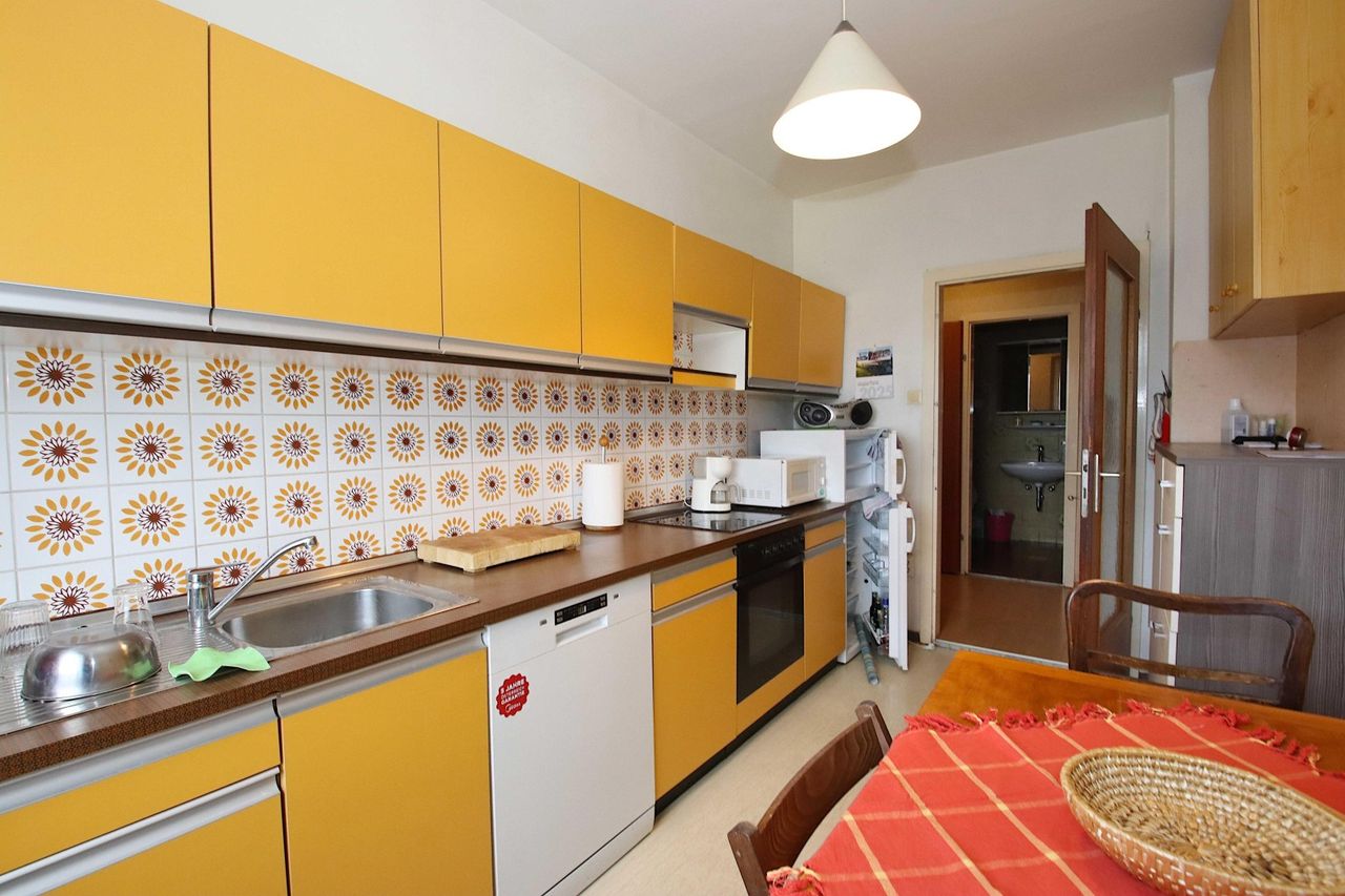 Raumaufteilung: Vorraum, Abstellraum, WC, Badezimmer mit Wanne, Küche, Schlafzimmer und großzügiges Wohnzimmer mit Zugang zur Loggia.