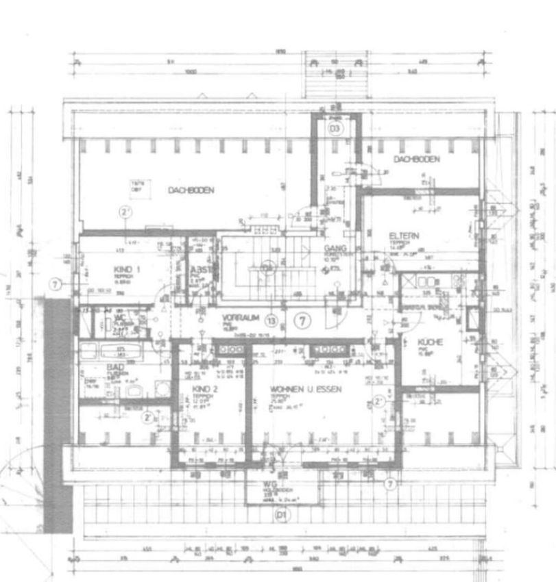 Die separate Küche mit integriertem Essbereich lädt zum gemeinsamen Kochen und Verweilen ein. Drei großzügige Schlafzimmer bieten genügend Raum für die ganze Familie oder individuelle Nutzung als Arbeits- oder Gästezimmer. Ein praktischer Abstellraum sorgt für zusätzlichen Stauraum.