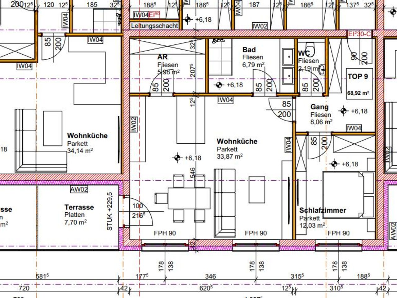 Die hier angebotene Wohnung Top 9 befindet sich im 2. OG und bietet Ihnen auf 68,92m² Wohnfläche