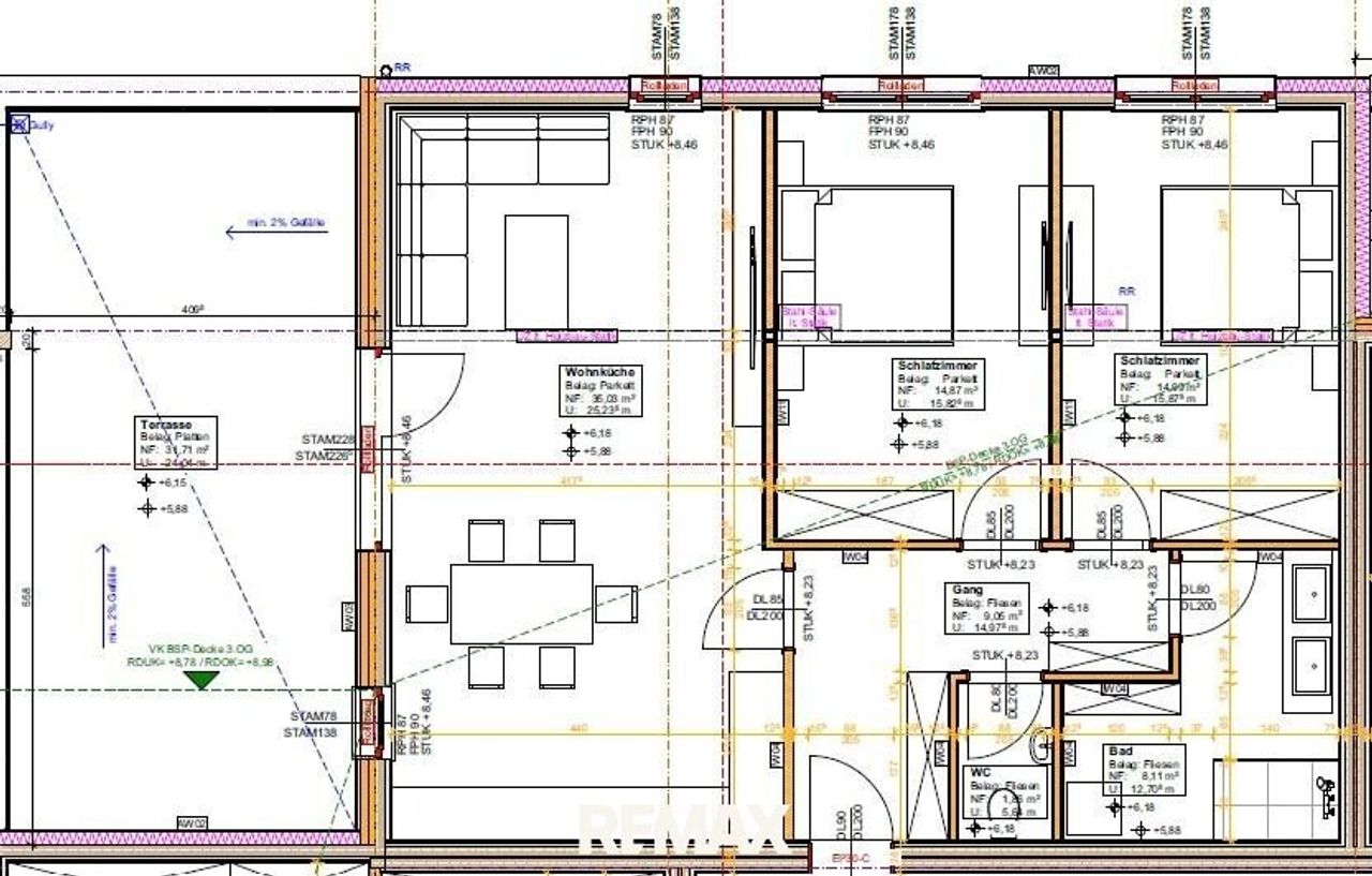 Bei der Wahl der Baustoffe wird besonders auf Hochwertigkeit geachtet, der Anspruch auf maximale Lebensqualität und minimalen Energieverbrauch wird bestmöglich erfüllt.