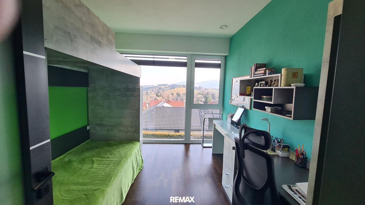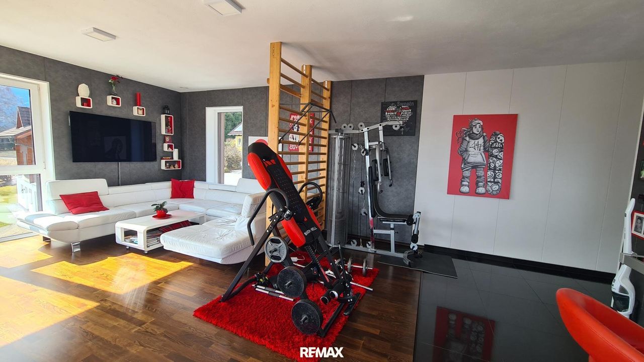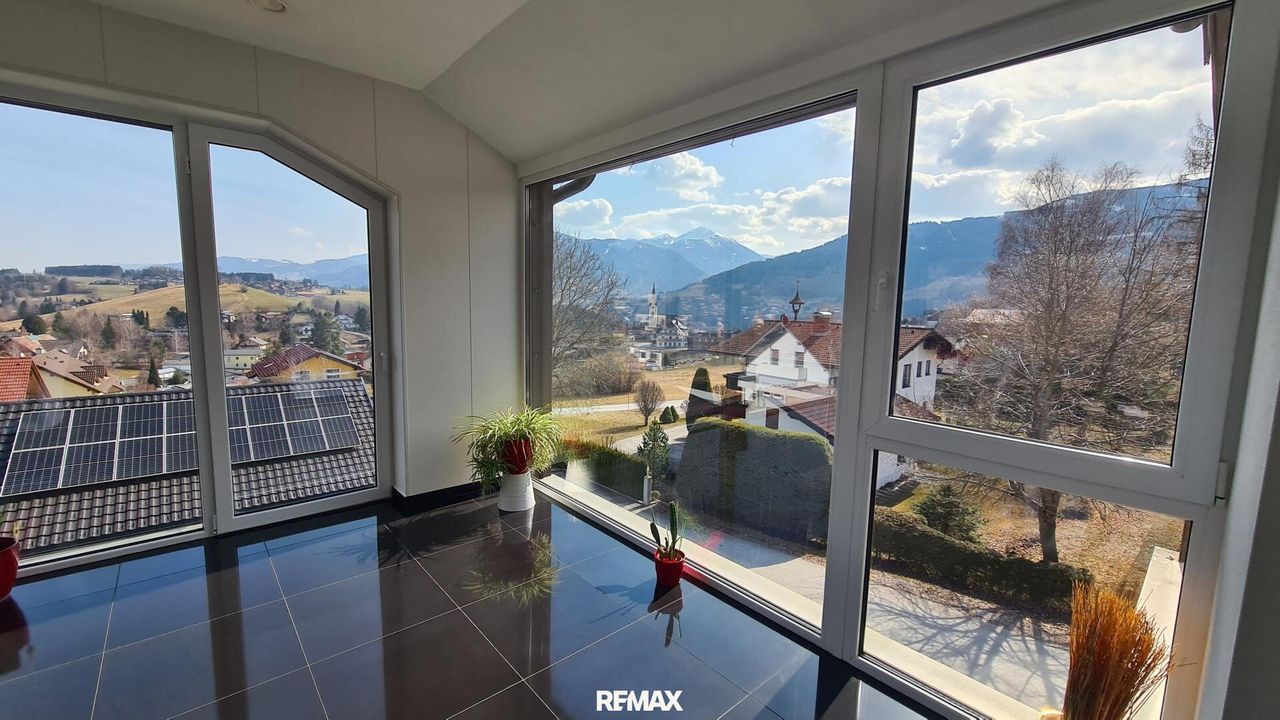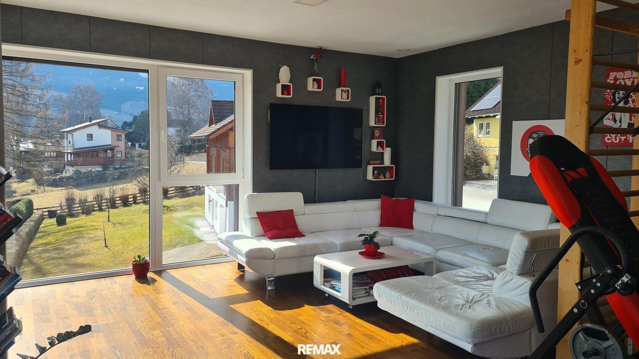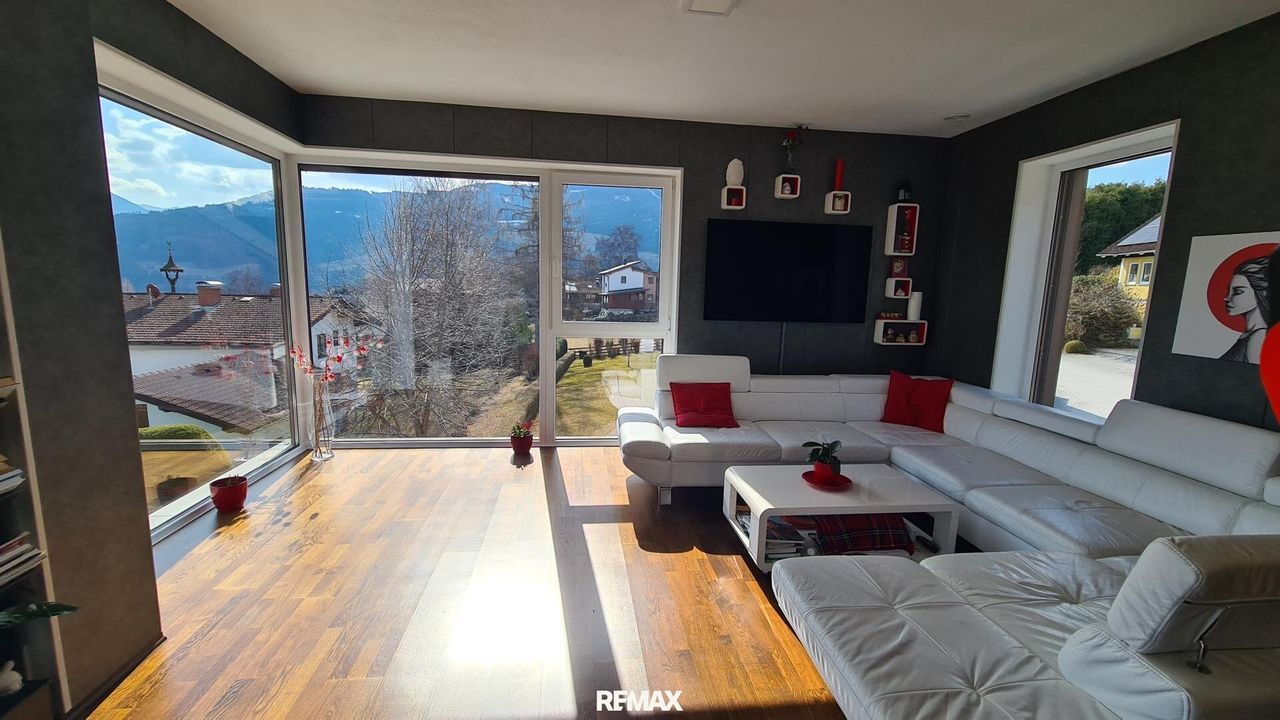 Bereits beim Betreten der Wohnung wird der offene und lichtdurchflutete Charakter spürbar. Der großzügige Wohn- und Essbereich bildet das Herzstück der Immobilie. Große Fensterflächen sorgen nicht nur für eine angenehme Helligkeit im gesamten Wohnraum, sondern eröffnen auch einen spektakulären 180-Grad-Panoramablick über Gröbming und die umliegende Landschaft. Die Kombination aus moderner Architektur und dieser einzigartigen Aussicht schafft eine besondere Wohnatmosphäre.