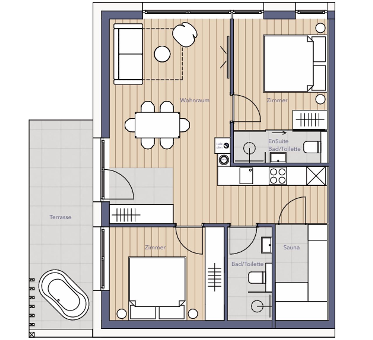 Die Appartements sind kompakt, hochwertig und klar auf die Bedürfnisse eines anspruchsvollen alpinen Gästesegments abgestimmt.