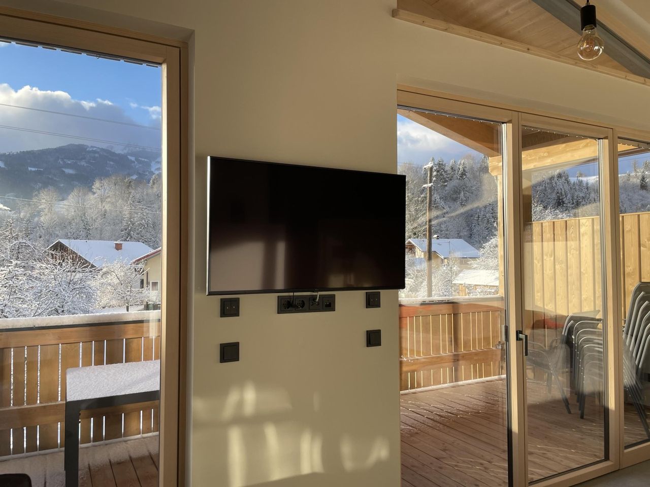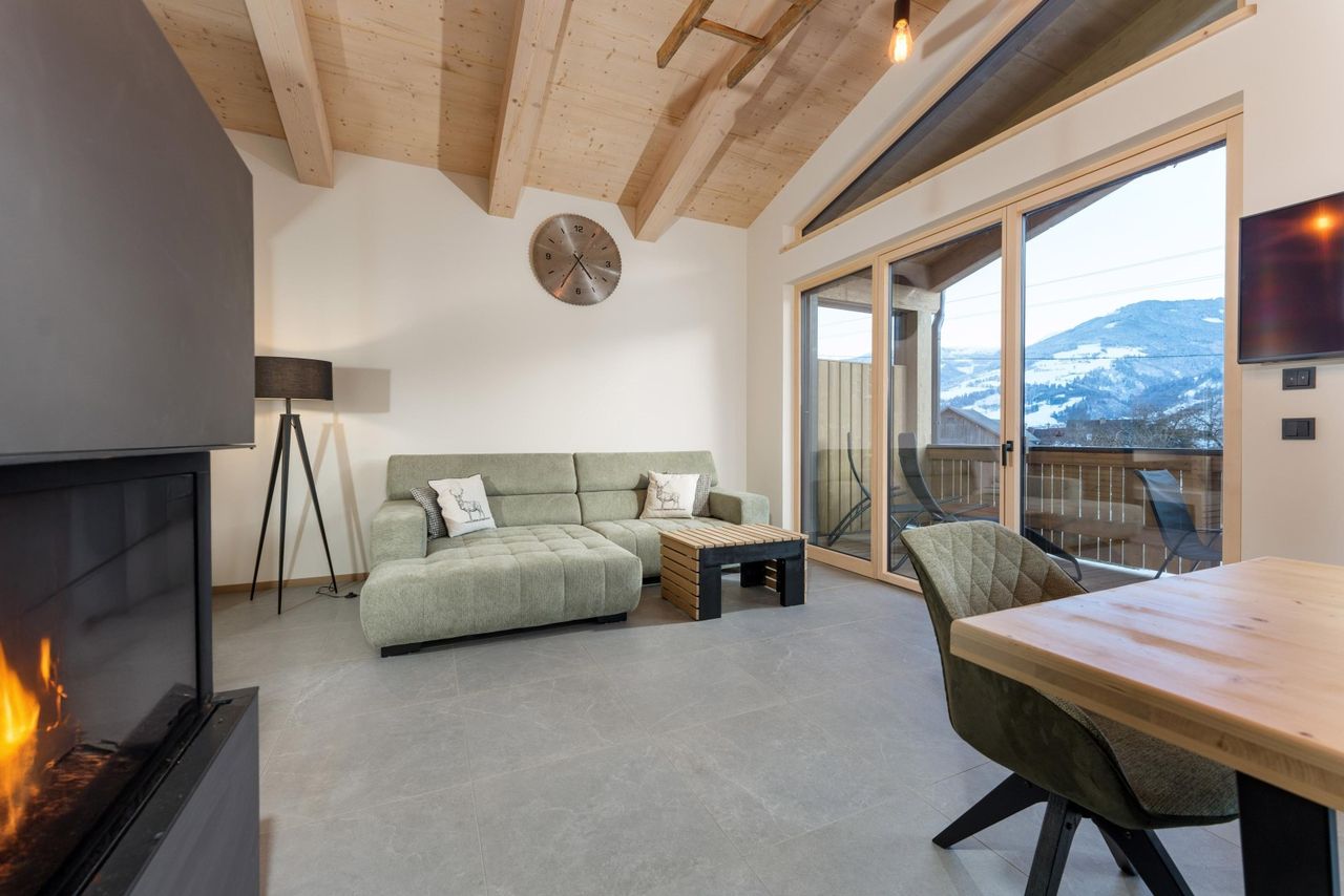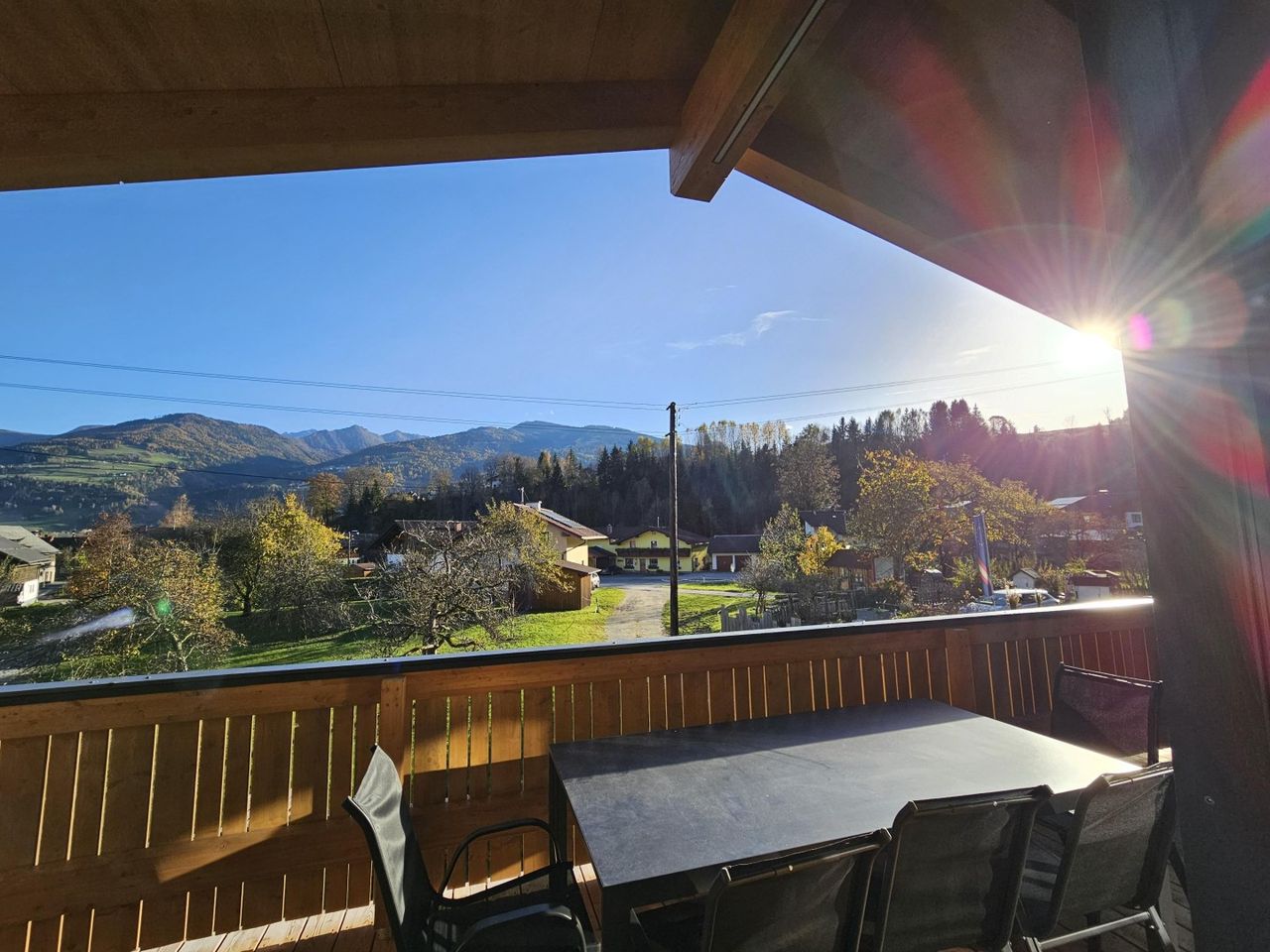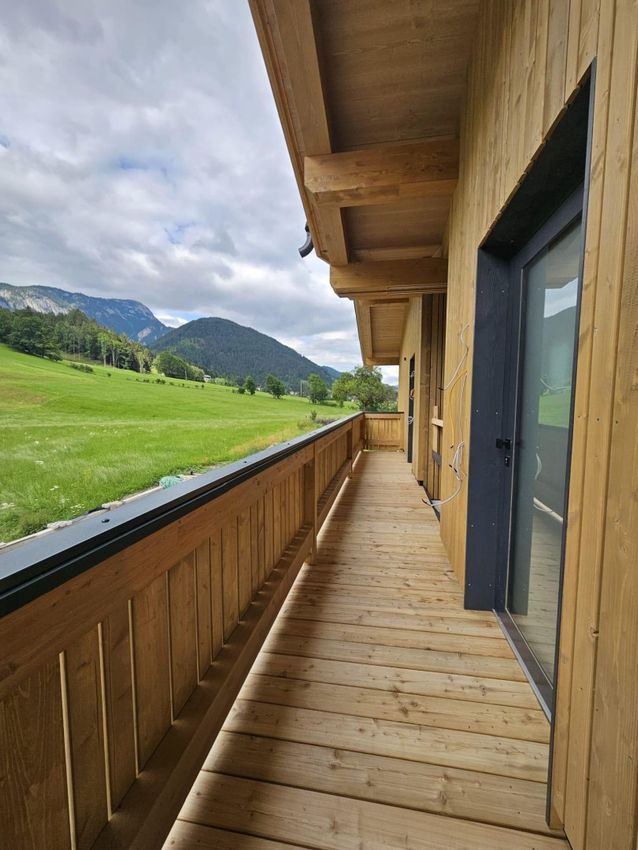 Der atemberaubende Blick auf das Bergpanorama des Hauser Kaibling und auf dem überdachten Südbalkon auf unberührte Wiesen lässt keine Wünsche offen.