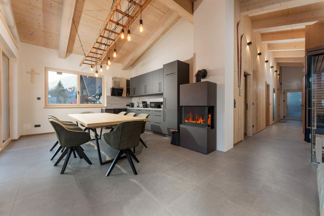 Nach dem Motto „wohnen, wo andere Urlaub machen“ leben Sie inmitten der grandiosen Südwände des Dachsteins und der Schladminger Tauern.