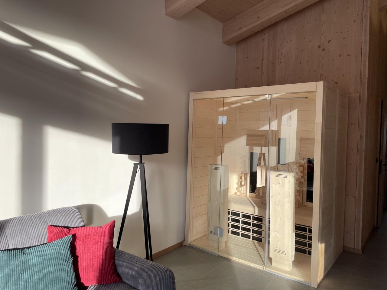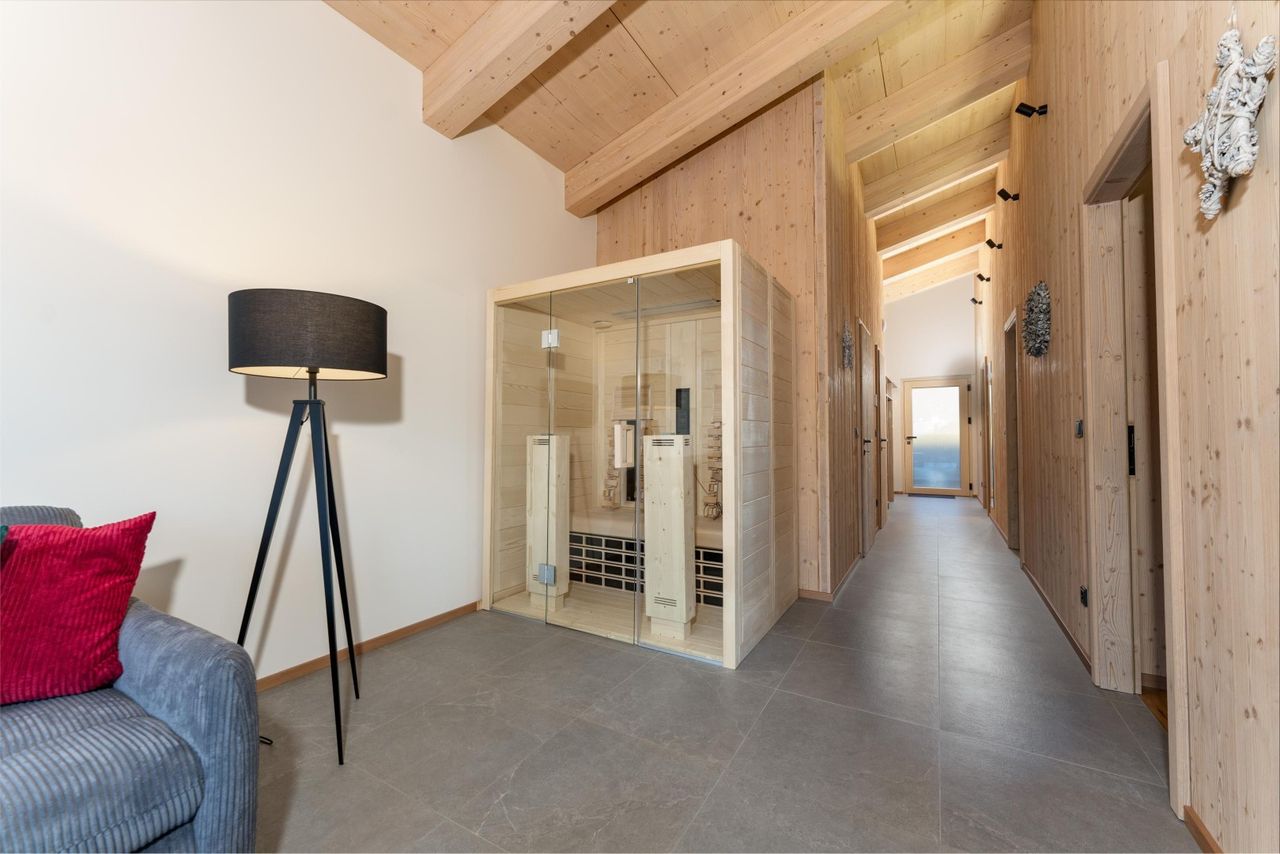 Vorraum, 3 Schlafzimmer mit je 1 Badezimmer/Du/WC en suit, Technikraum/Abstellraum, Wohn- Ess- Küchenbereich mit Kamin, Infrarotkabine