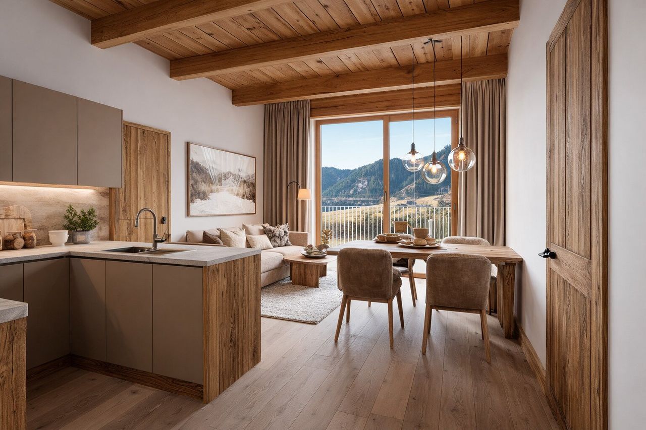 Zeitlose, alpine Architektur trifft auf klare, moderne Linienführung. Hochwertige Naturmaterialien wie Holz, Stein und Glas verschmelzen zu einem harmonischen Gesamtkonzept. Großzügige Terrassen, Gärten und Balkone erweitern den Wohnraum nach außen und bieten spektakuläre Ausblicke zu jeder Jahreszeit.