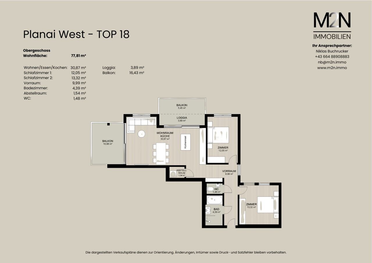Eine geschützte Loggia sowie zwei separate Balkone erweitern den Wohnraum und bieten zu unterschiedlichen Tageszeiten sonnige Plätze im Freien.