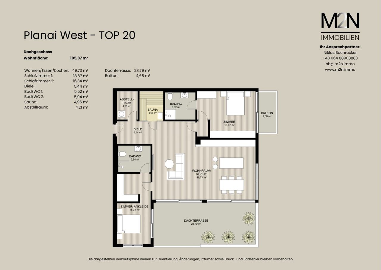 Die großzügige Dachterrasse mit fast 30 m² erweitert den Wohnraum erheblich und bietet einen außergewöhnlichen Außenbereich für entspannte Stunden im Freien.