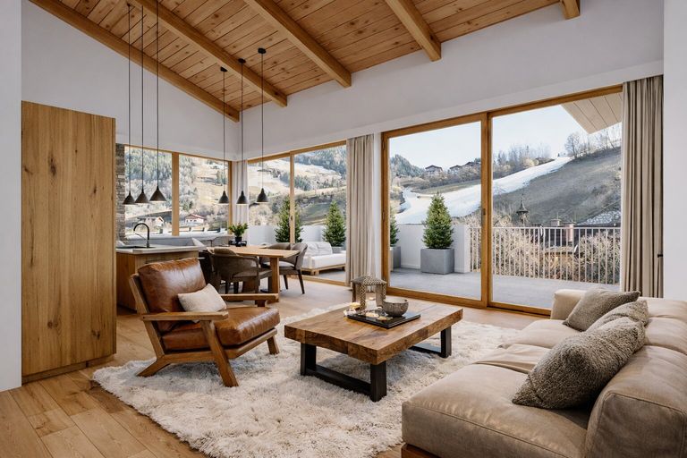 Zeitlose, alpine Architektur trifft auf klare, moderne Linienführung. Hochwertige Naturmaterialien wie Holz, Stein und Glas verschmelzen zu einem harmonischen Gesamtkonzept. Großzügige Terrassen, Gärten und Balkone erweitern den Wohnraum nach außen und bieten spektakuläre Ausblicke zu jeder Jahreszeit.