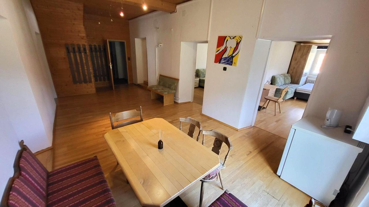 Großzügig geschnittene Wohnung in Massivbauweise im Westen der Skistadt Schladming - Unmittelbare Nähe zur Planai und den Reiteralm Bergbahnen! Diese Liegenschaft bietet eine ideale Lage und Anbindung und äußerst gute Vermietungsmöglichkeit! Seit 2019 wurde die Wohneinheit an ein Vorzeigeunternehmen in unserer Region vermietet und entsprechend als Mitarbeiterunterkunft genutzt! Weitere Nutzungsmöglichkeiten sind die touristische Vermietung oder aber auch gerne Hauptwohnsitz. Die gesamte Wohneinheit erstreckt sich über grundsätzlich zwei Ebenen, bestehend aus kleiner Küche, Keller/Lagerraum, die Wohnung Top 4 im Obergeschoss und zwei weiteren Zimmer mit Bad im Halbstock und bietet insgesamt eine Wohn-/ und Nutzfläche von ca. 202m². Zusätzlich besteht die...