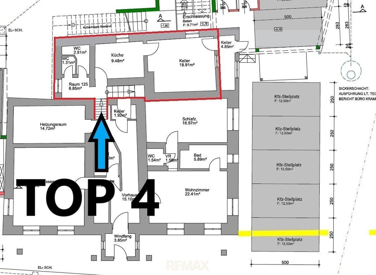 Die gesamte Wohneinheit erstreckt sich über grundsätzlich zwei Ebenen, bestehend aus kleiner Küche, Keller/Lagerraum, die Wohnung Top 4 im Obergeschoss und zwei weiteren Zimmer mit Bad im Halbstock und bietet insgesamt eine Wohn-/ und Nutzfläche von ca. 202m².