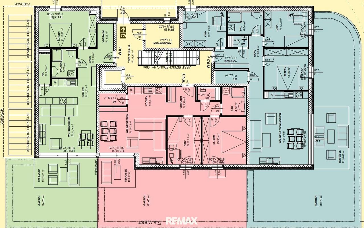 Die hier angebotene WOHNUNG W 0.1 (Haus West, EG, Top 1) bietet eine Wohnfläche von ca.65,3m², dazu eine Terrasse mit ca.14,3m² sowie einen Garten mit ca.34,76m², zusätzlich ein Kellerabteil.