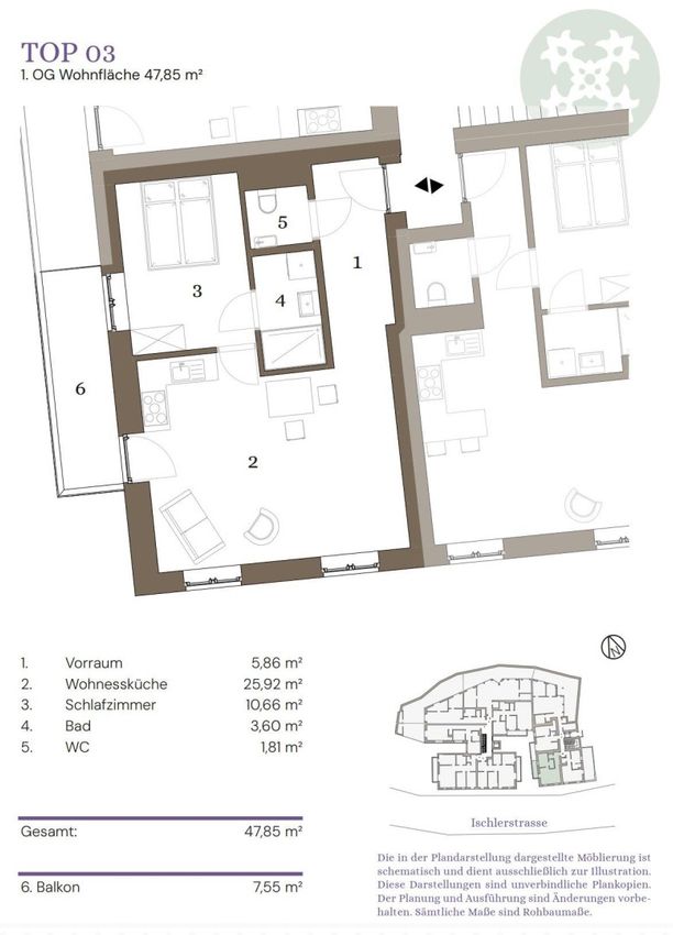 In der Ischlerstraße - in einem historisch bedeutsamen wie auch geschichtsträchtigem Gebäude - entstehen insgesamt 34 Wohnungen (höchste Widmungsklasse), geeignet zur Begründung eines Zweitwohnsitzes wie auch zur touristischen Vermietung, dazu 2 Geschäftslokale.