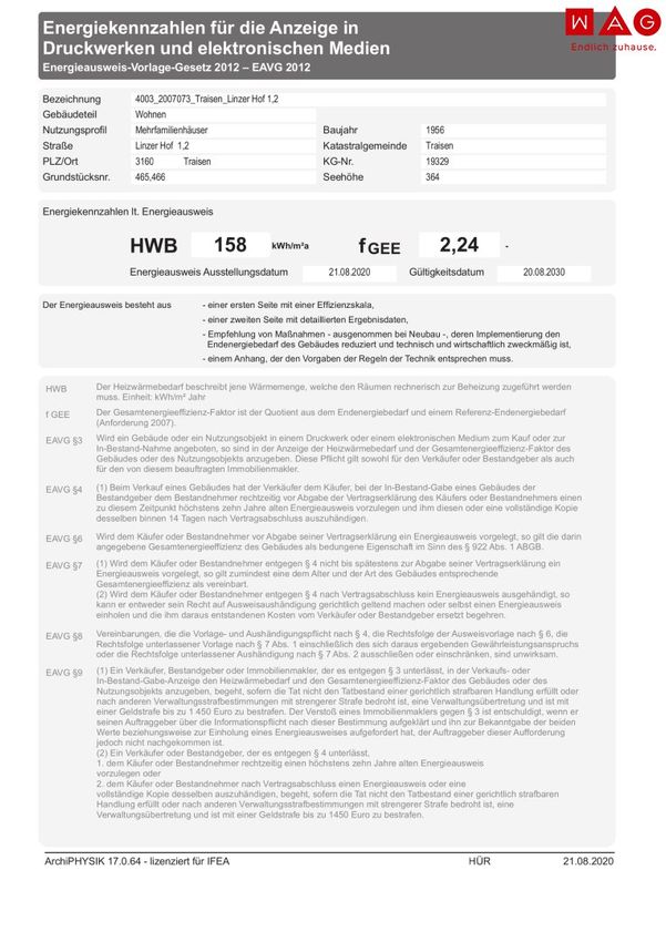 Auf Grund einer neuen Besiedlungsstrategie, welche unter anderem die leistbare Eigentumsbildung in unseren Siedlungsgebieten in Traisen vorsieht, hat sich die WAG entschlossen, einen ausgewählten Teil des Wohnungsbestandes zum Verkauf anzubieten.