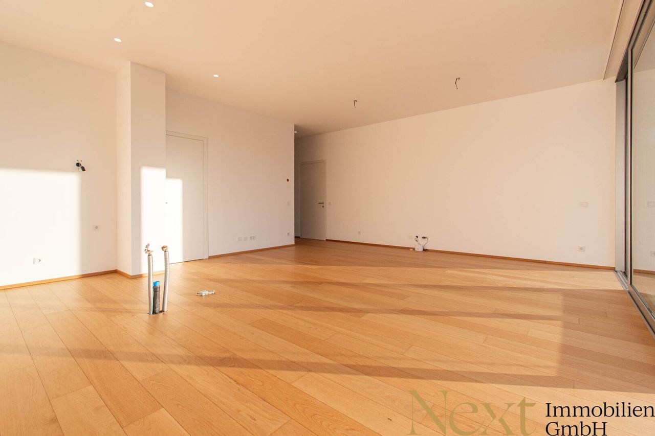 Die diversen Räumlichkeiten dieser Wohnung werden nahezu malerisch in Szene gesetzt - bodentiefe Glasfronten sorgen für eine entspannte und angenehme Wohnatmosphäre. In den Nassbereichen kommen zeitlose Feinsteinzeug-Fliesen zum Einsatz, während in den Wohn- und Schlafräumen ein edler Eichen-Echtholzparkettboden verlegt ist. Die dreifach verglasten Schallschutzfenster werden darüber hinaus mit elektrisch gesteuerten Raffstores versehen.