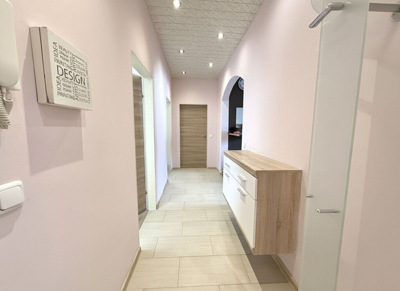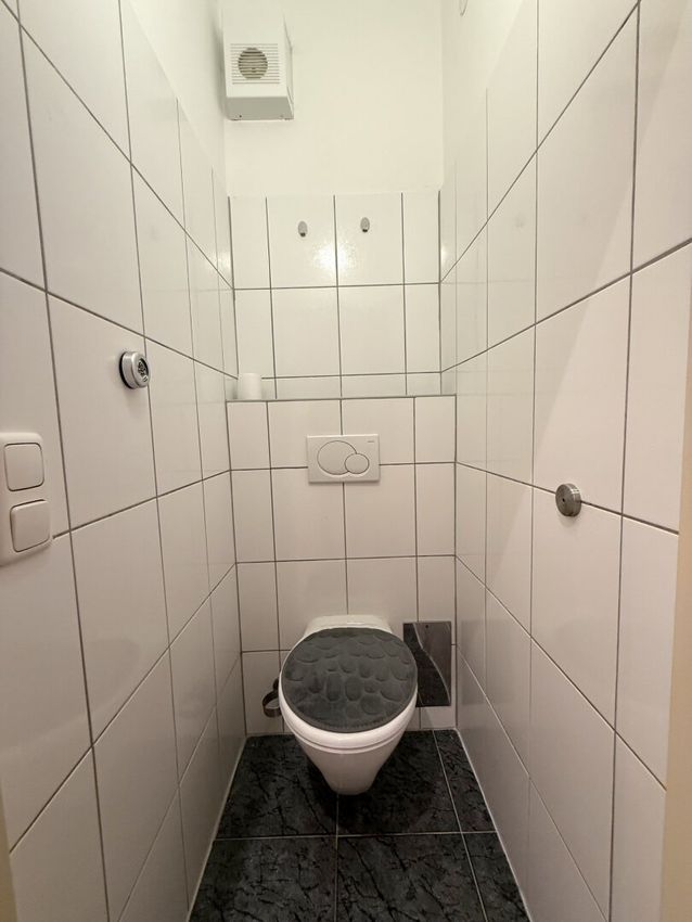 Zusätzlich gibt es ein Badezimmer, ein extra WC und einen zentralen Flur. Vom Wohnbereich aus gelangt man auf den Balkon, der zusätzlichen Freiraum zum Entspannen bietet.