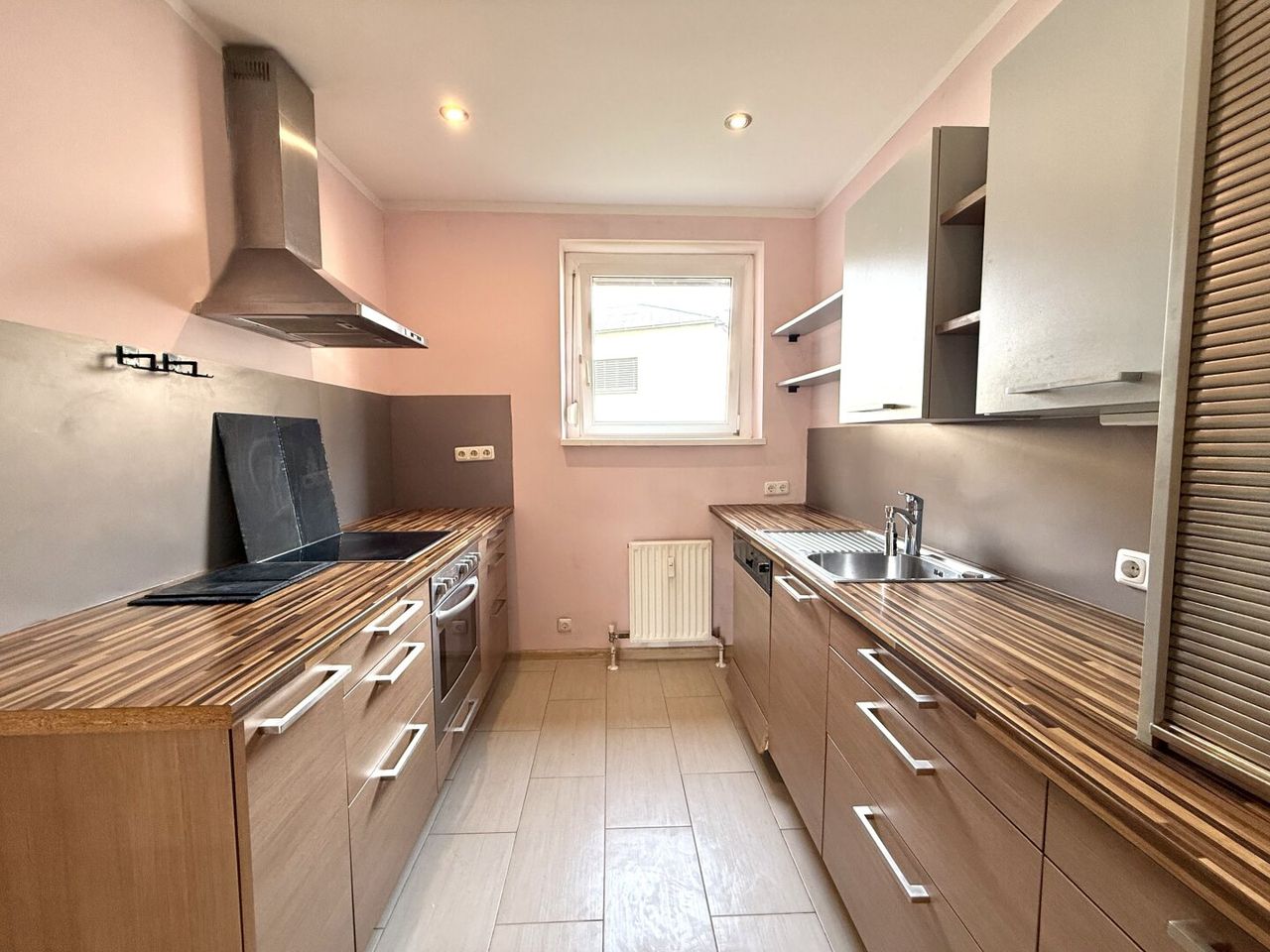 Die Wohnung verfügt über zwei Schlafzimmer, ein großzügiges Wohnzimmer sowie eine separate, sehr geräumige Küche. Die Küche ist bereits ausgestattet mit Geschirrspüler, Backofen, Herd und Kühlschrank und bietet ausreichend Platz zum Kochen und Verstauen.