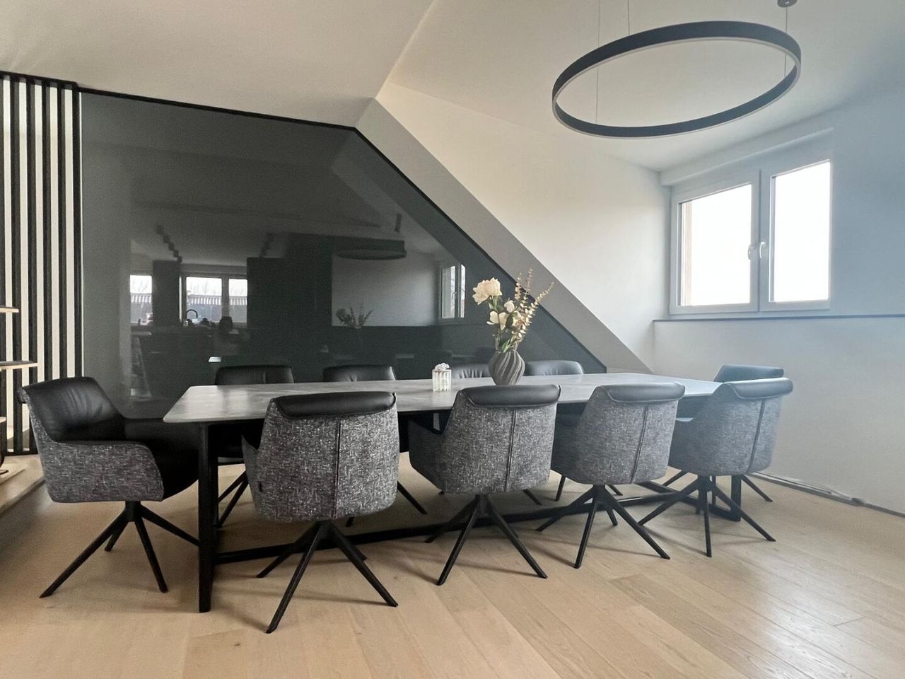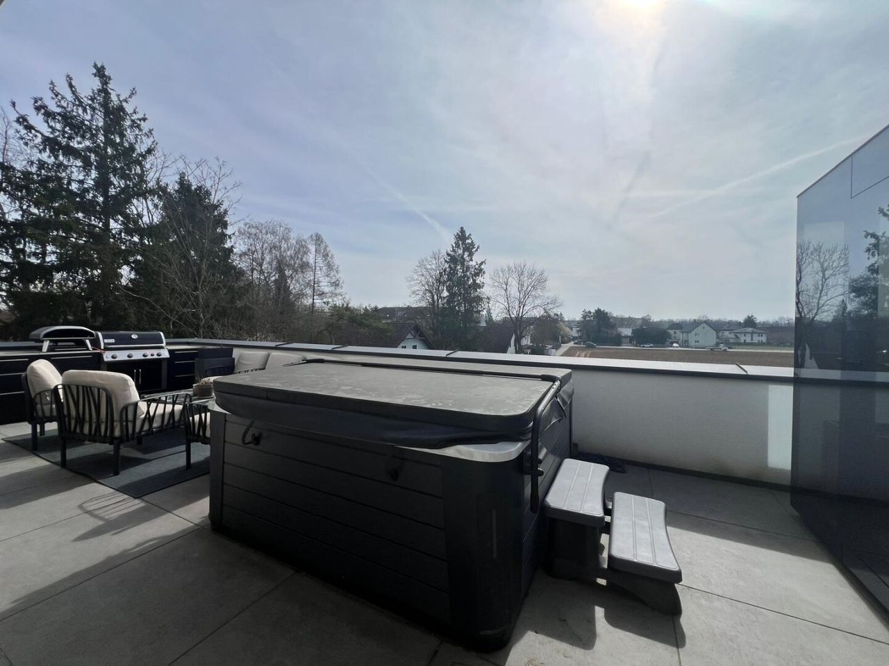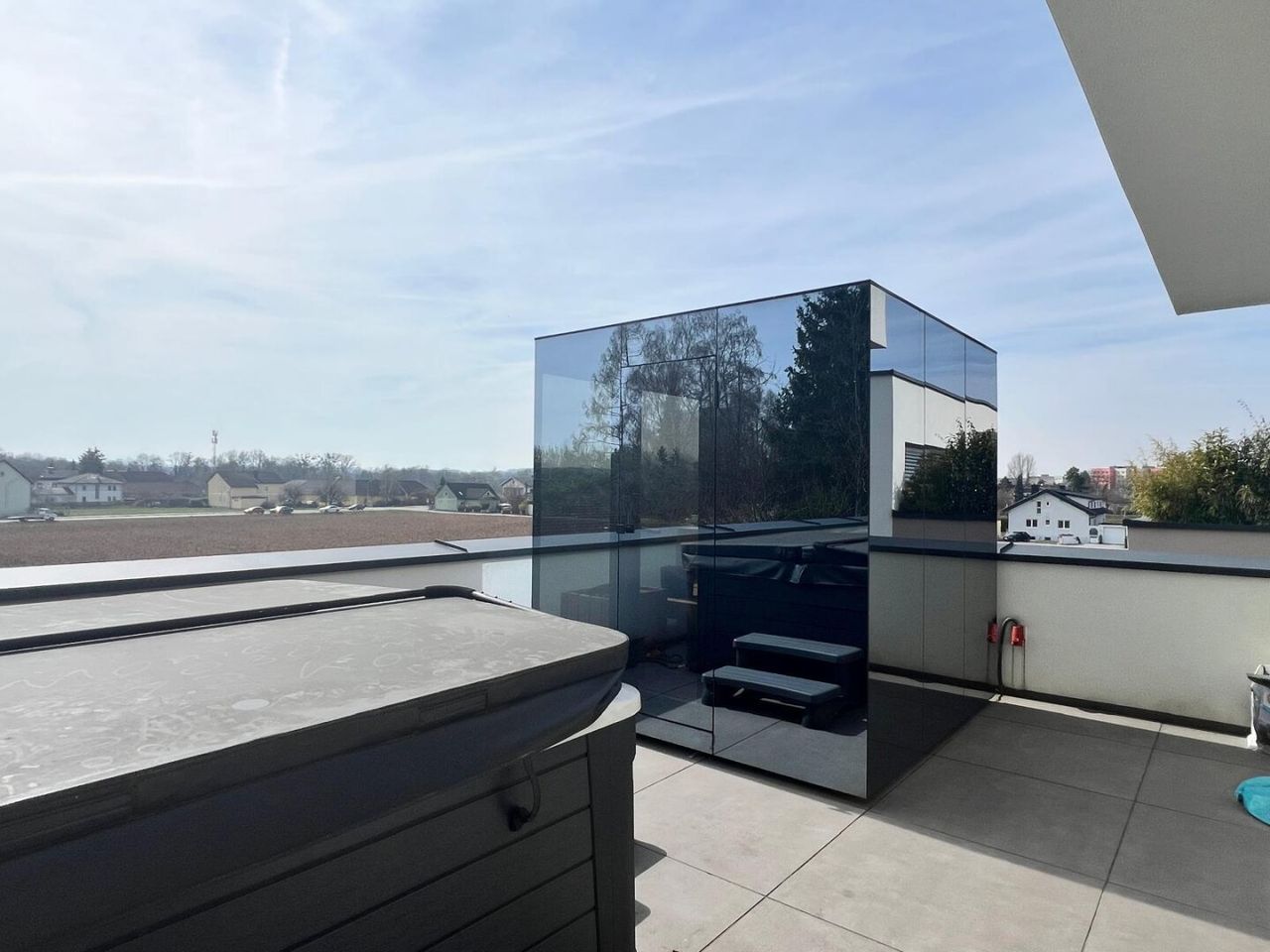 Das zweigeschossige Penthouse befindet sich im ersten bzw. zweiten OG eines 2019 errichteten Wohnhauses am Ende einer Sackgasse, in absolut ruhiger und zentrumsnaher Lage. Hochwertig maßgefertigte Möbeleinbauten, eine offene Küche mit Top Geräten sowie ein durchdachtes Lichtkonzept verbleiben in der Wohnung. Besonders hervorzuheben ist das großzügig und offen gestaltete Obergeschoss. Küche/Essen/Wohnen haben gesamt ca.92 m², bis hin zur ca.51 m² großen Terrasse/Loggia mit Jacuzzi, Sauna und Outdoorküche, vermittelt diese Immobilie ein exklusives Wohnambiente Ein Bezug ist auch kurzfristig möglich. Zur Wohnung gehören weiters zwei PKW-Abstellplätze (1x Carport-unter dem Haus) und ein Kellerabteil. Beheizung und Warmwasseraufbereitung erfolgen mittels Luftwärmepumpe ( Fußbodenheizung...