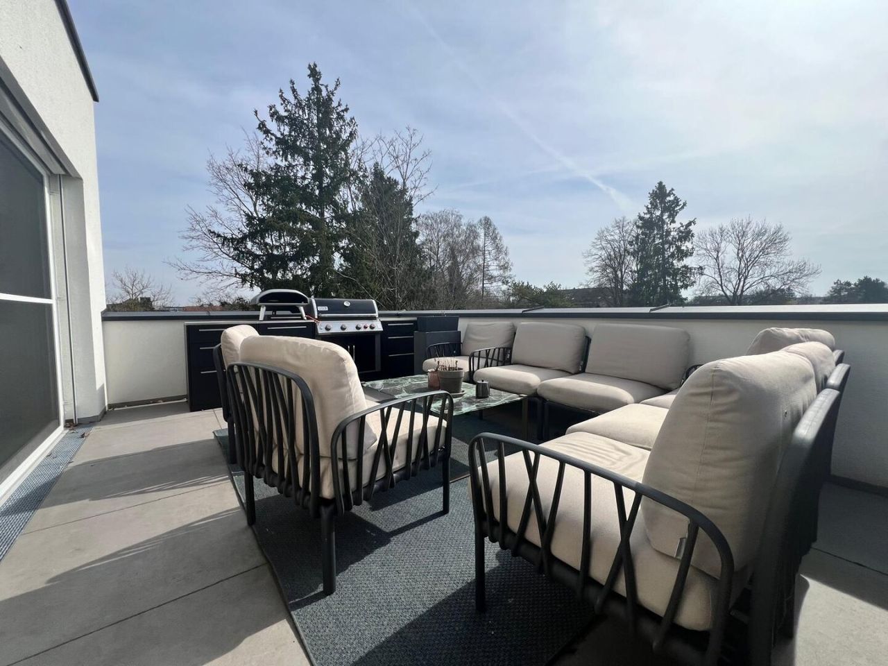 Das zweigeschossige Penthouse befindet sich im ersten bzw. zweiten OG eines 2019 errichteten Wohnhauses am Ende einer Sackgasse, in absolut ruhiger und zentrumsnaher Lage. Hochwertig maßgefertigte Möbeleinbauten, eine offene Küche mit Top Geräten sowie ein durchdachtes Lichtkonzept verbleiben in der Wohnung. Besonders hervorzuheben ist das großzügig und offen gestaltete Obergeschoss. Küche/Essen/Wohnen haben gesamt ca.92 m², bis hin zur ca.51 m² großen Terrasse/Loggia mit Jacuzzi, Sauna und Outdoorküche, vermittelt diese Immobilie ein exklusives Wohnambiente Ein Bezug ist auch kurzfristig möglich. Zur Wohnung gehören weiters zwei PKW-Abstellplätze (1x Carport-unter dem Haus) und ein Kellerabteil. Beheizung und Warmwasseraufbereitung erfolgen mittels Luftwärmepumpe ( Fußbodenheizung ). Eine Objekt der Extraklasse mit herrlichem Ausblick in die umliegenden Felder und optimaler Infrastruktur, nur ca. 500 Meter vom Zentrum Traun entfernt. Der Ordnung halber halten wir fest, dass bei Abschluss eines Rechtsgeschäftes die gesetzliche Provision von 3% zzgl. USt. vom Kaufpreis in Rechnung gestellt wird.