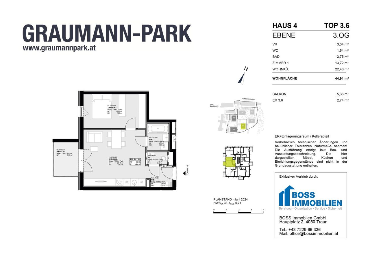 Mit den neuen Eigentumswohnungen wird das Graumann-Viertel komplett. Direkt im autofreien Park des Viertels und im Zentrum der Stadt Traun gelegen bieten die Wohnungen: