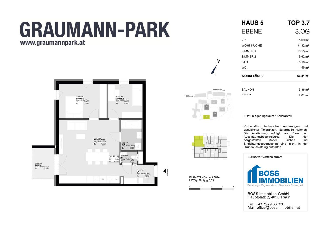Mit den neuen Eigentumswohnungen wird das Graumann-Viertel komplett. Direkt im autofreien Park des Viertels und im Zentrum der Stadt Traun gelegen bieten die Wohnungen: