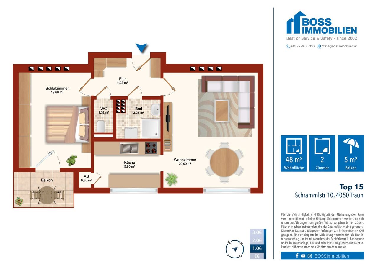 Unverbindliches, freibleibendes Angebot. Informationen nach bestem Wissen und Gewissen vom Abgeber erhalten - für die Richtigkeit wird keine Haftung übernommen. Mündliche Nebenabreden zum angebotenen Objekt bedürfen zu Ihrer Wirksamkeit der Schriftform. Irrtümer, Druckfehler und Änderungen vorbehalten. Besichtigungen und Beratungen erfolgen kostenlos, lediglich im Falle einer erfolgreichen Vermittlungstätigkeit ist die gesetzliche bzw. angeführte Provision in Höhe von 3% des Bruttoverkaufspreises zzgl. 20% USt. zur Zahlung fällig. Der Vermittler ist als Doppelmakler tätig. Es besteht zwischen dem Vermittler und dem Abgeber kein wirtschaftliches Naheverhältnis. Information zum Datenschutz unter www.bossimmobilien.at/datenschutz