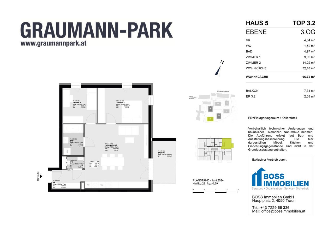 Mit den neuen Eigentumswohnungen wird das Graumann-Viertel komplett. Direkt im autofreien Park des Viertels und im Zentrum der Stadt Traun gelegen bieten die Wohnungen: