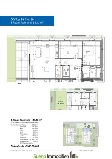 - 85,43 m² Wohnraum mit 45m² Garten