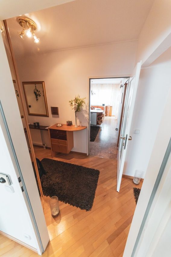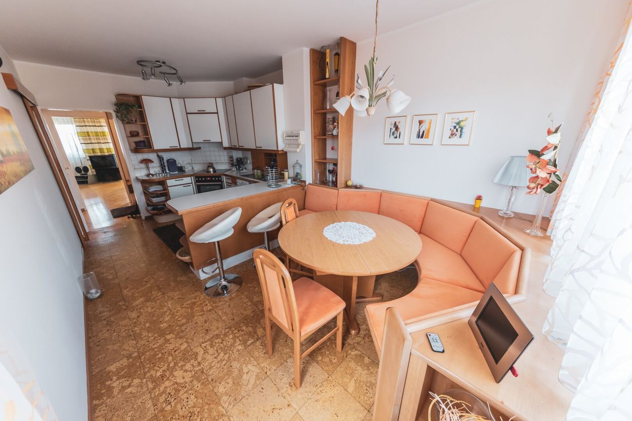 Alle Fenster sind mit Innenjalousien ausgestattet, die Wohnräume mit Parkettböden, Vorzimmer, Bad und WC haben Fliesenböden, die Küche ist mit Korkboden ausgelegt. Von der voll ausgestatteten Küche mit Esstisch gelangt man auf einen kleinen Balkon - ideal zB für den Anbau eines kleinen Kräutergartens.