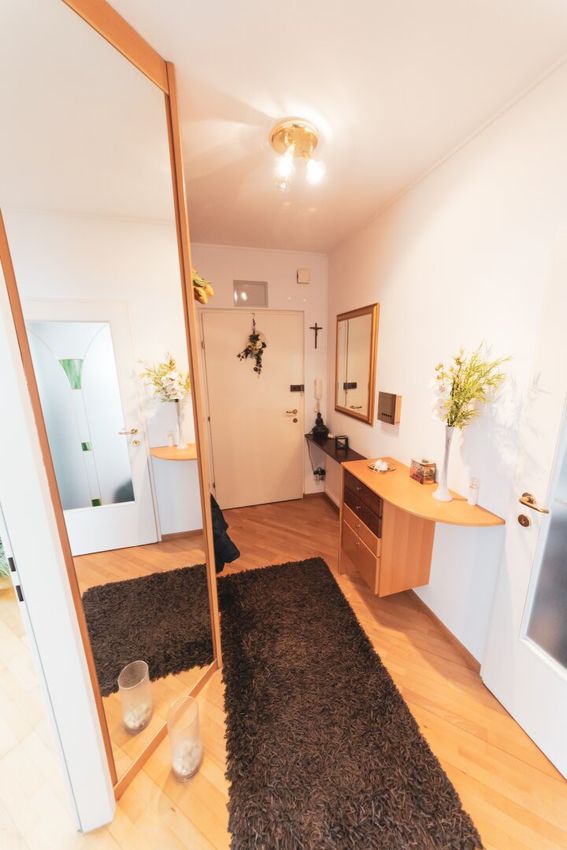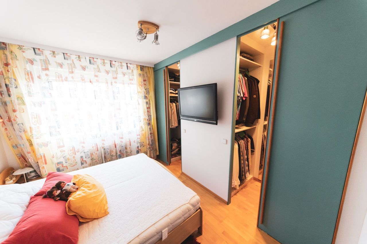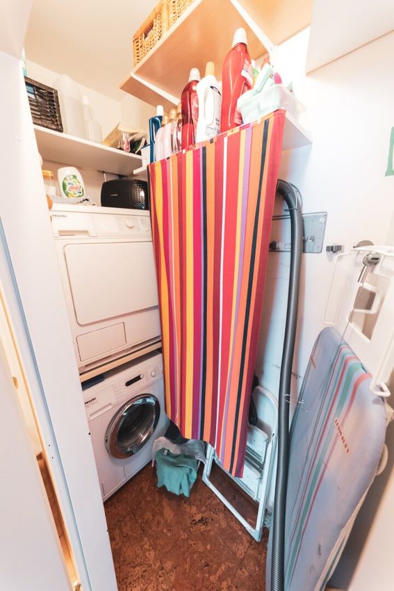 Die Wohnung zeichnet sich durch optimaler Stauraumlösungen mit Einbauschränken und einem eigenen Abstellraum dür Waschmaschine, Trockner und Reinigungszubehör aus.