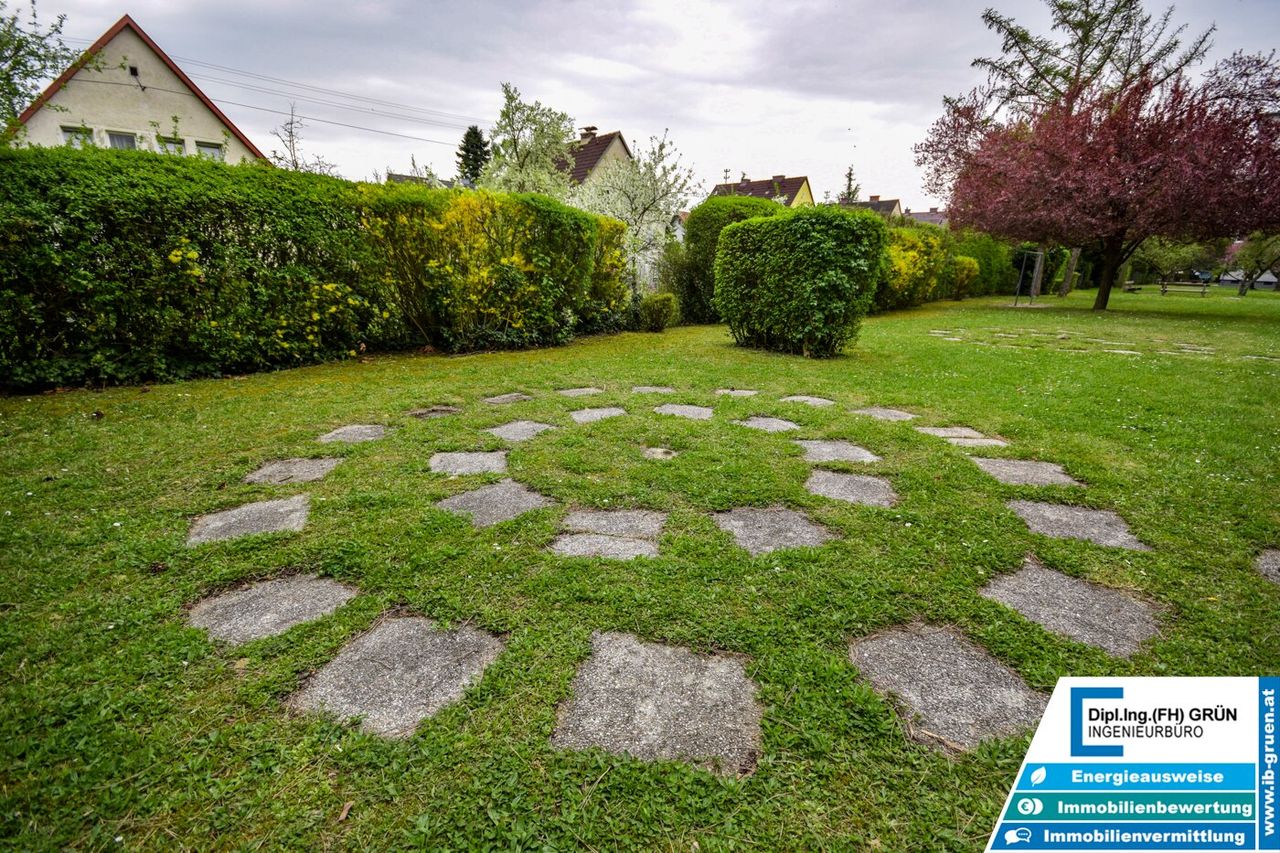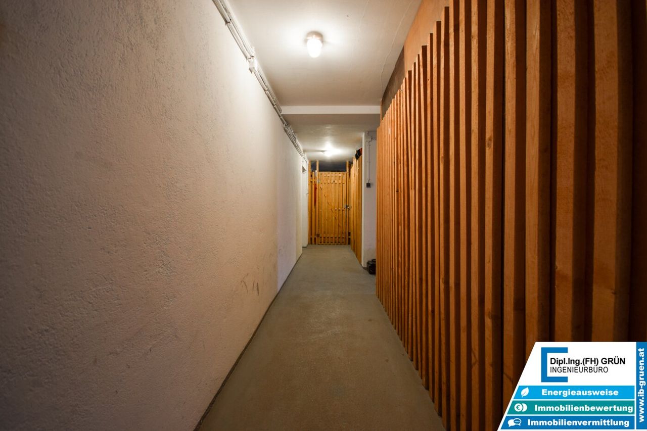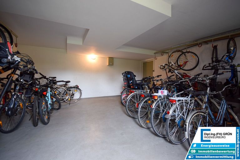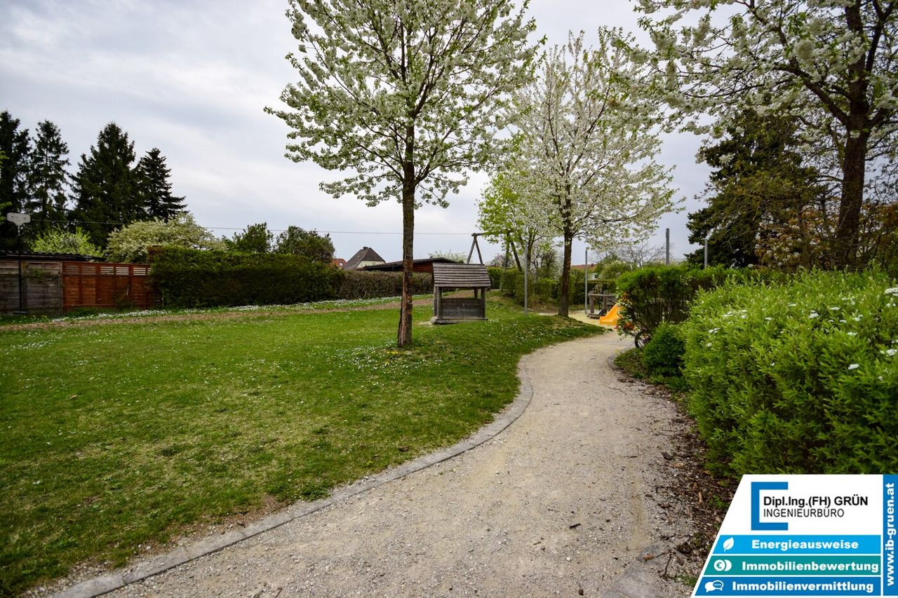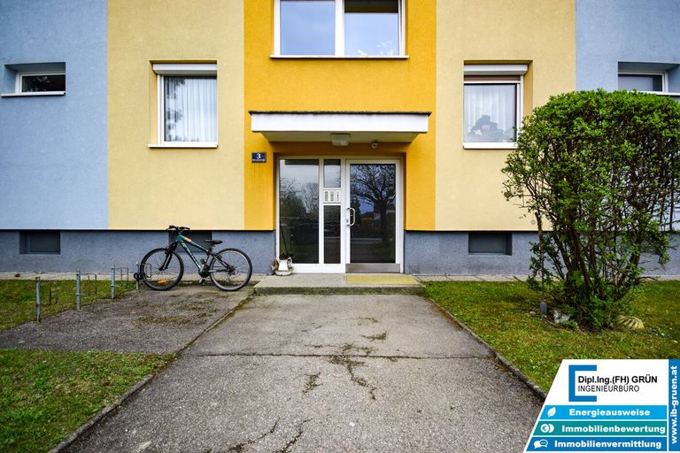 Zur Wohnanlage gehört eine sehr große Grünfläche, die für ein angenehmes und offenes Wohngefühl sorgt. Vor dem Haus stehen den Bewohnern Parkplätze der Wohnanlage zur Verfügung. Diese sind zwar nicht fix zugeteilt, in der Praxis ist jedoch in der Regel ausreichend Parkmöglichkeit vorhanden. Zusätzlich kann entlang der Straße problemlos geparkt werden.