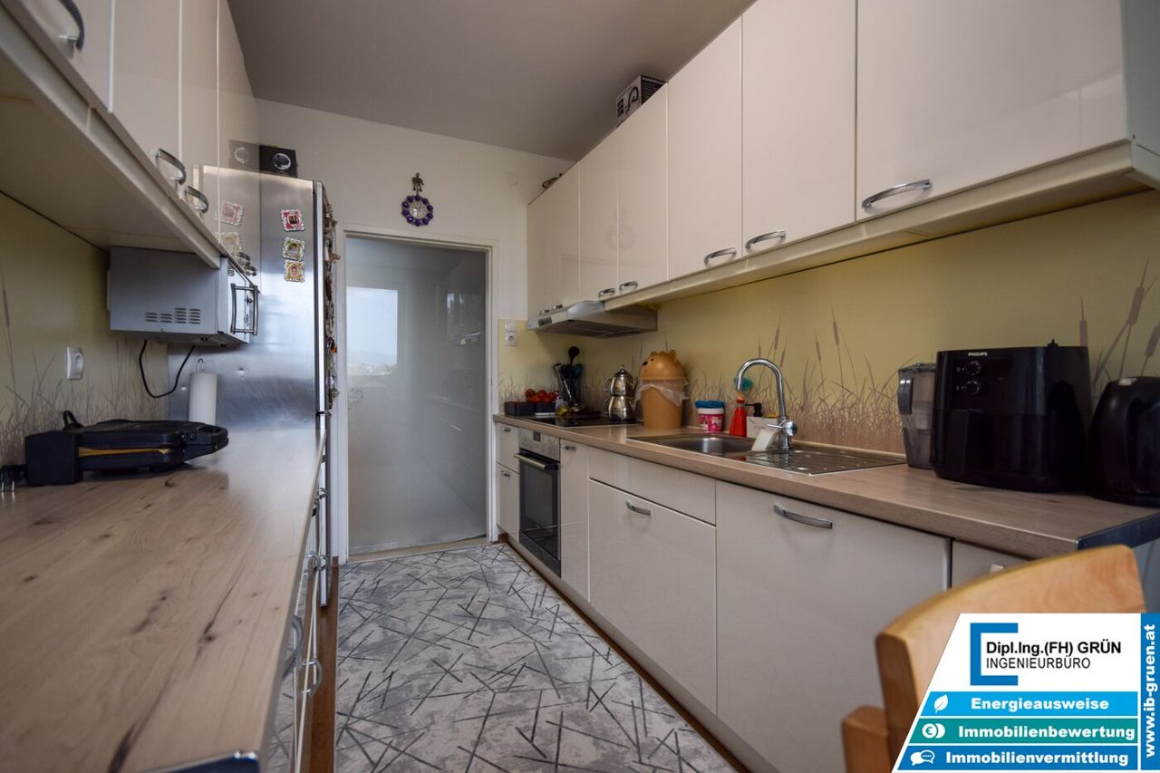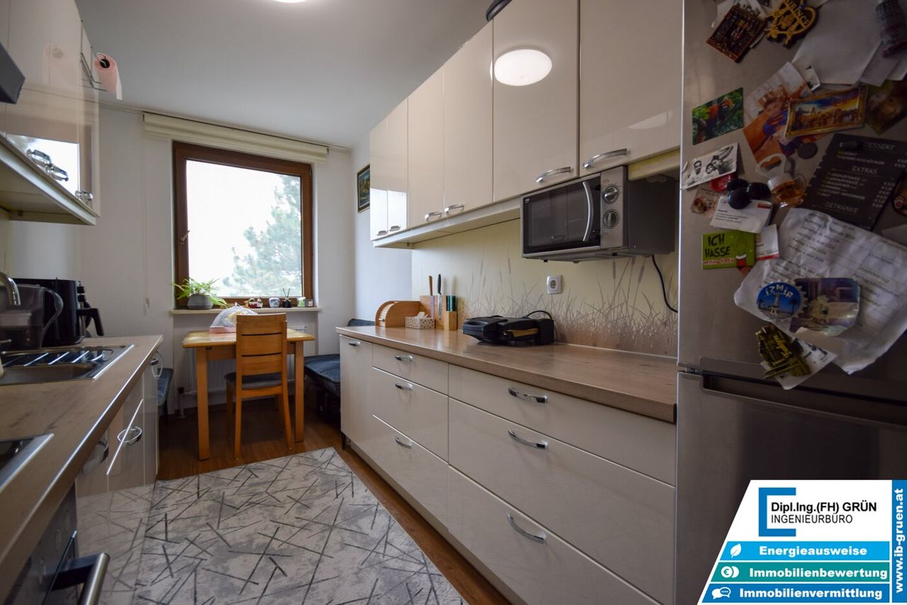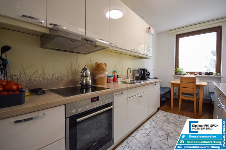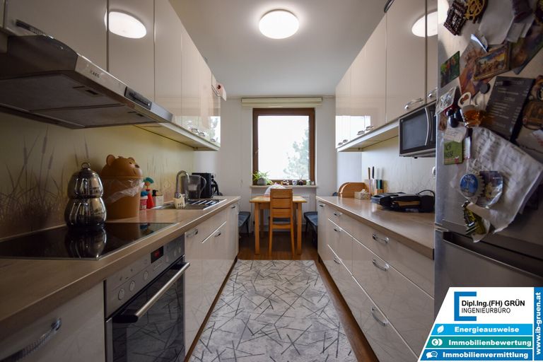 Sowohl die Wohnung als auch das Haus präsentieren sich in einem gepflegten Zustand. Besonders hervorzuheben sind das helle Wohnambiente, die moderne und gepflegte Einbauküche sowie die ruhige Lage innerhalb der Wohnanlage. Beheizt wird die Wohnung mittels Fernwärme.