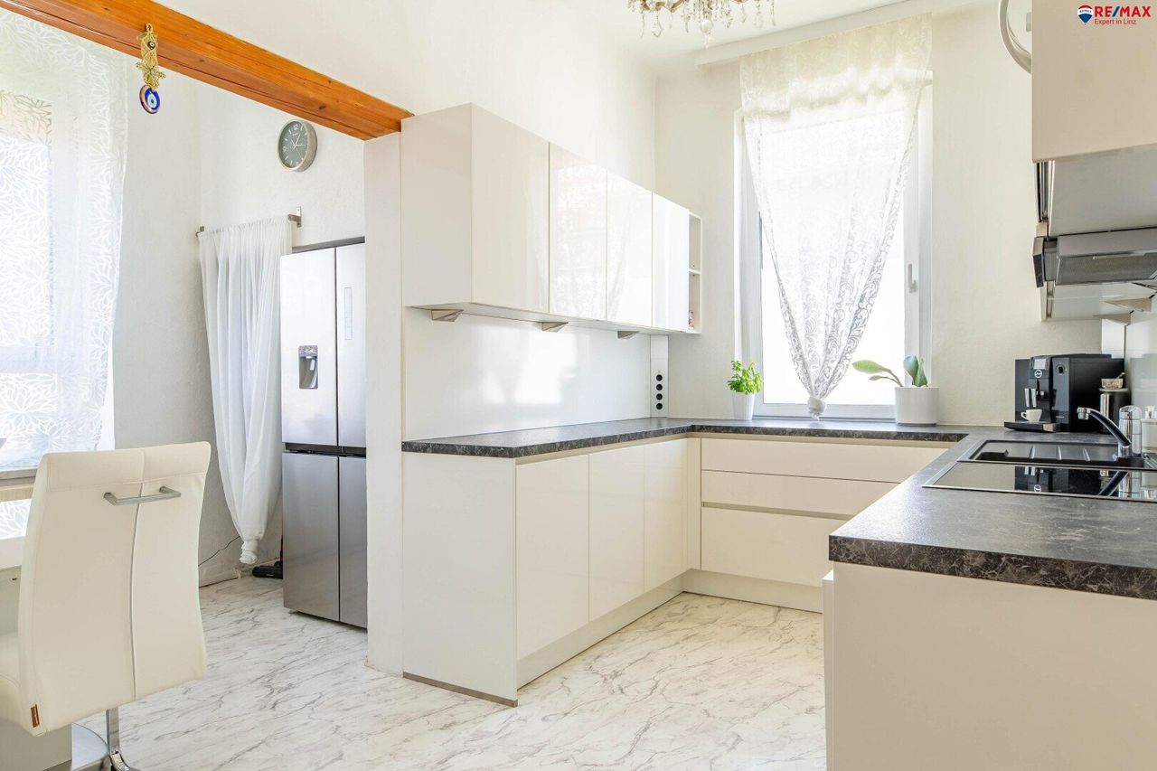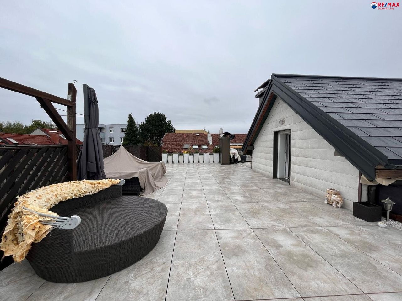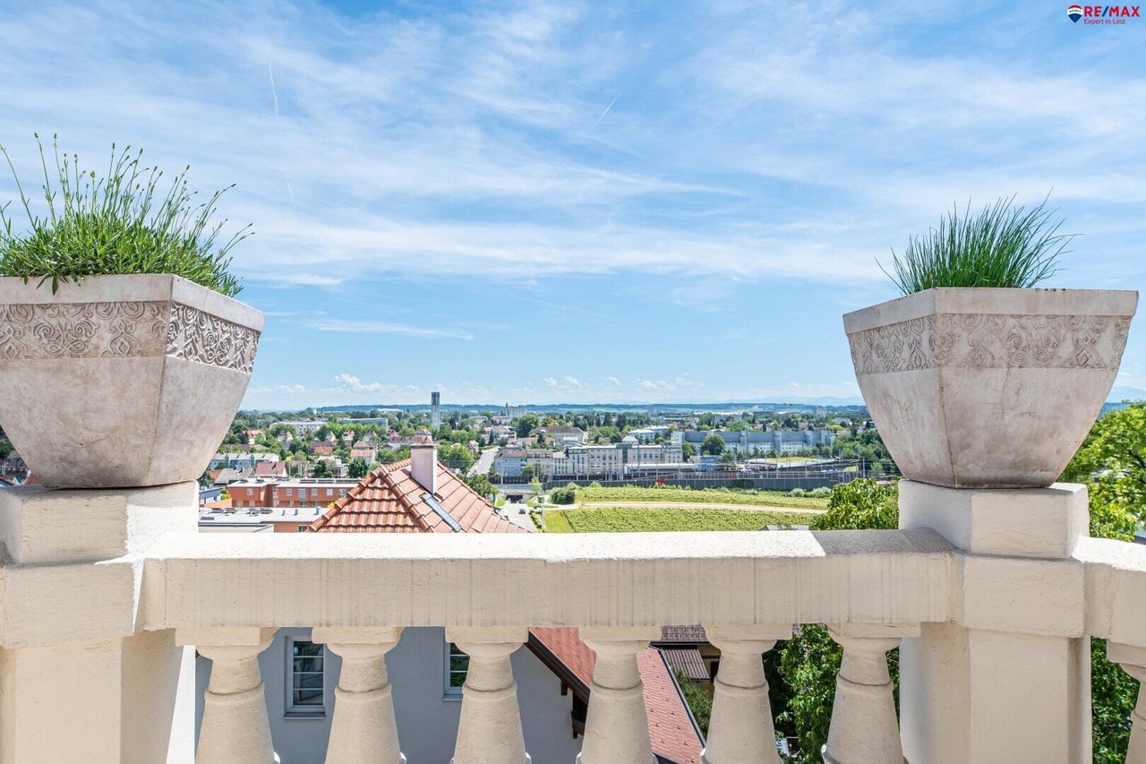 ***EXKLUSIV*** Penthouse-Wohnung in Jungendstilvilla in Leonding Erleben Sie außergewöhnlichen Wohnkomfort in dieser exklusiven Penthouse-Wohnung, welche sich in einer Jugendstilvilla mit nur insgesamt 3 Wohneinheiten befindet. Erbaut im Jahr 1904 und liebevoll generalsaniert zwischen 1991 und 1993 sowie 2010, 2015 und 2022. Die Wohnung befindet sich im zweiten Obergeschoss und erstreckt sich über 155 m², ergänzt durch eine beeindruckende 121 m² große Dachterrasse, die das Haus auf drei Seiten umgibt und einen fantastischen Ausblick bietet. Der Zustand der Wohnung ist hervorragend, und ist nach Vereinbarung verfügbar. HARDFACTS: - 3 m Deckenhöhe - Doppelflügeltüren - moderne Küche - Schlafzimmer mit Schrankraum -...