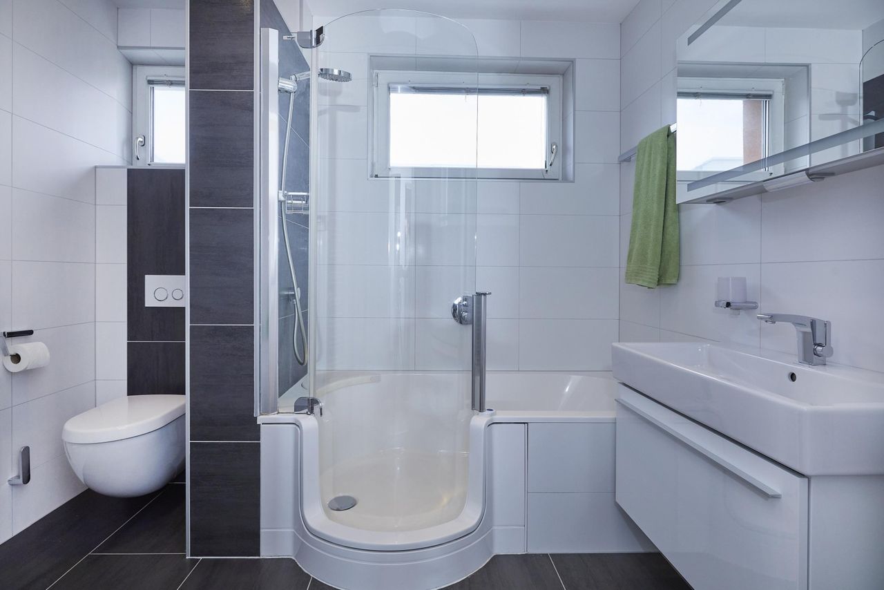 - Bad mit Duschwanne und WC
