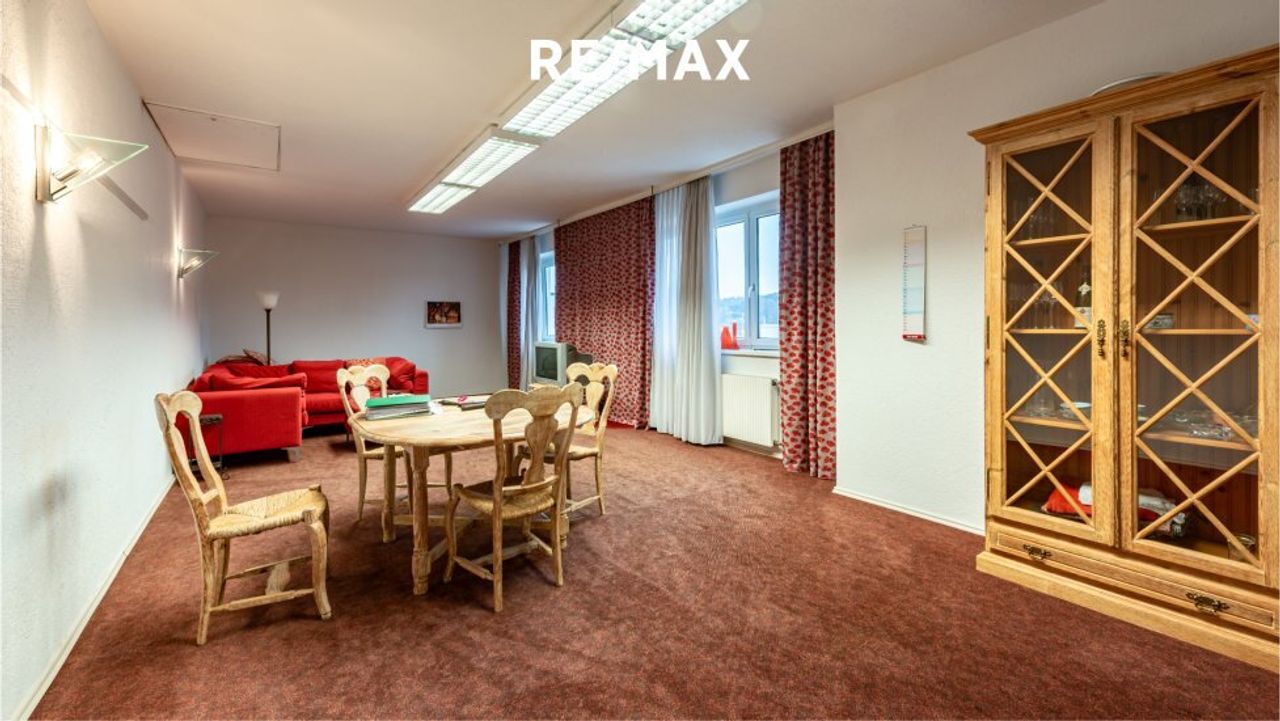 Die (derzeitige) Betriebswohnung befindet sich im Obergeschoss und bietet auf ca. 240,9 m² eine großzügige und helle Wohnfläche. Sie besteht aus 5 Zimmern, die nach individuellen Bedürfnissen genutzt werden können. Zwei nach Süden ausgerichtete Balkone sorgen für ausreichend Tageslicht und ein angenehmes Ambiente. Die Raumaufteilung ermöglicht sowohl private als auch geschäftliche Nutzung, ideal für Unternehmer, die Wohnen und Arbeiten unter einem Dach vereinen möchten.