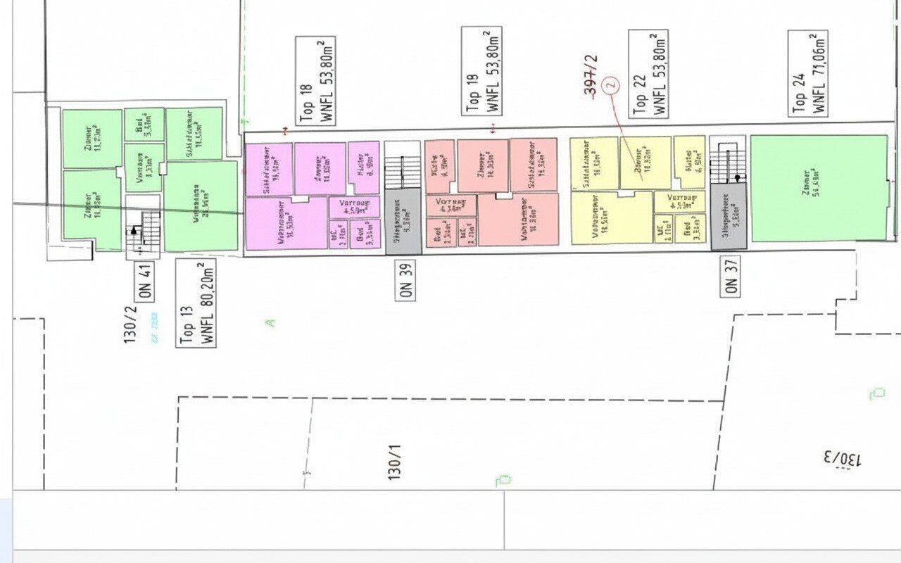 - 15 parifizierte Wohnungen zwischen 44–90 m², verteilen sich auf drei Stiegenhäuser