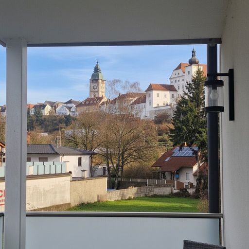 Der durchdachte Grundriss bietet zwei gut geschnittene Kinderzimmer, ein gemütliches Schlafzimmer sowie ein Badezimmer mit Dusche, Badewanne und WC. Zusätzlich steht ein separates Gäste-WC zur Verfügung – ideal für Familien und Besucher. Herzstück der Wohnung ist der großzügige, offen gestaltete Wohn- und Essbereich: Hier eröffnet sich ein beeindruckender Blick auf den Ennser Stadtturm und das Schloss Ennsegg – ein Ausblick, der jeden Tag besonders macht. Vom Wohn- und Essbereich gelangt man direkt auf den großzügigen, überdachten Balkon, der zum Entspannen im Freien einlädt.