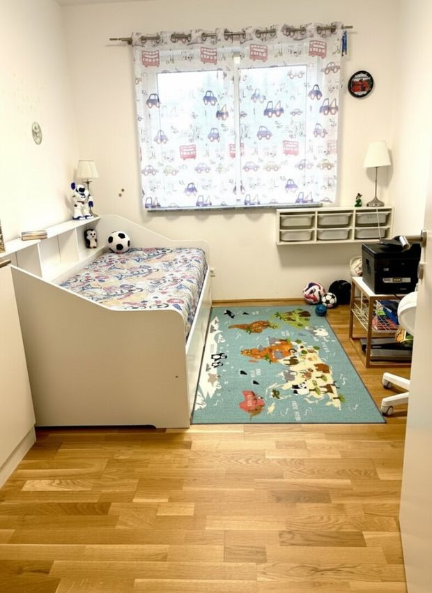 Der durchdachte Grundriss bietet zwei gut geschnittene Kinderzimmer, ein gemütliches Schlafzimmer sowie ein Badezimmer mit Dusche, Badewanne und WC. Zusätzlich steht ein separates Gäste-WC zur Verfügung – ideal für Familien und Besucher. Herzstück der Wohnung ist der großzügige, offen gestaltete Wohn- und Essbereich: Hier eröffnet sich ein beeindruckender Blick auf den Ennser Stadtturm und das Schloss Ennsegg – ein Ausblick, der jeden Tag besonders macht. Vom Wohn-...
