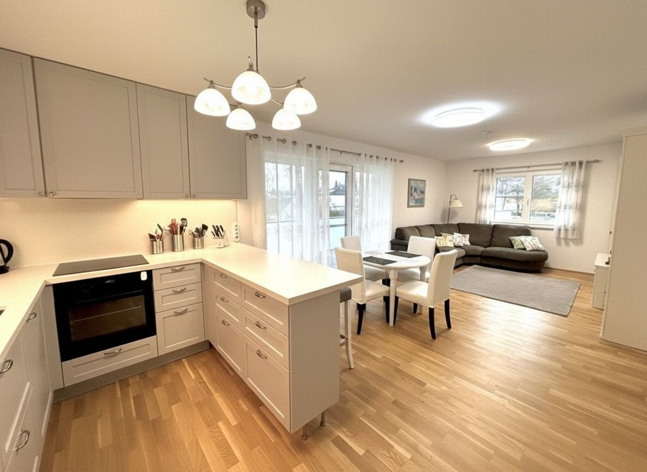 Die geschmackvolle Einbauküche fügt sich harmonisch in den Wohnraum ein und bietet viel Platz zum Kochen und Genießen. Ein praktischer Abstellraum sorgt für zusätzliche Ordnung und Stauraum. Hochwertige Parkettböden unterstreichen das stilvolle Ambiente. Insektenschutz und Rollläden sorgen für ein Plus an Behaglichkeit und Ruhe.