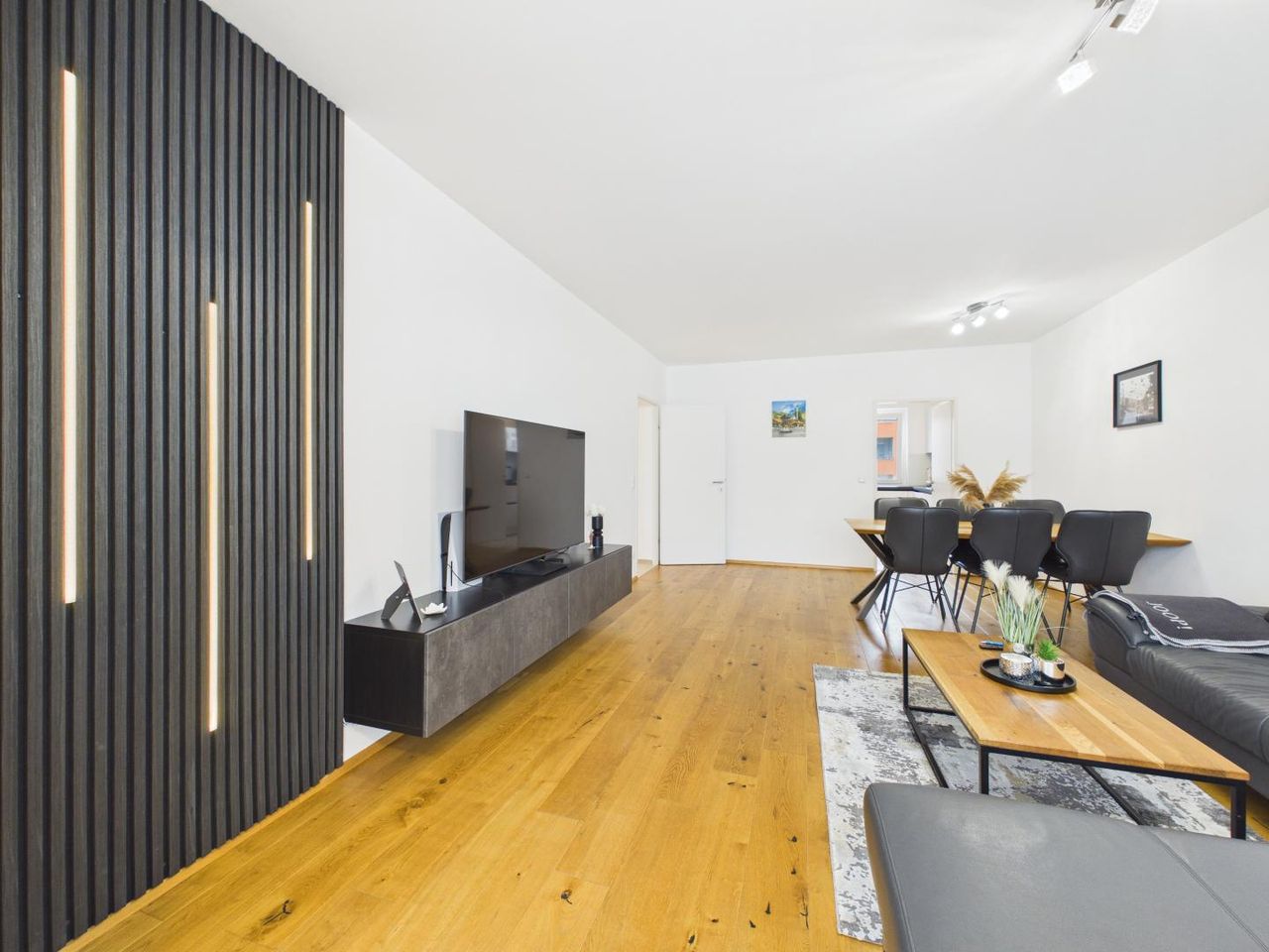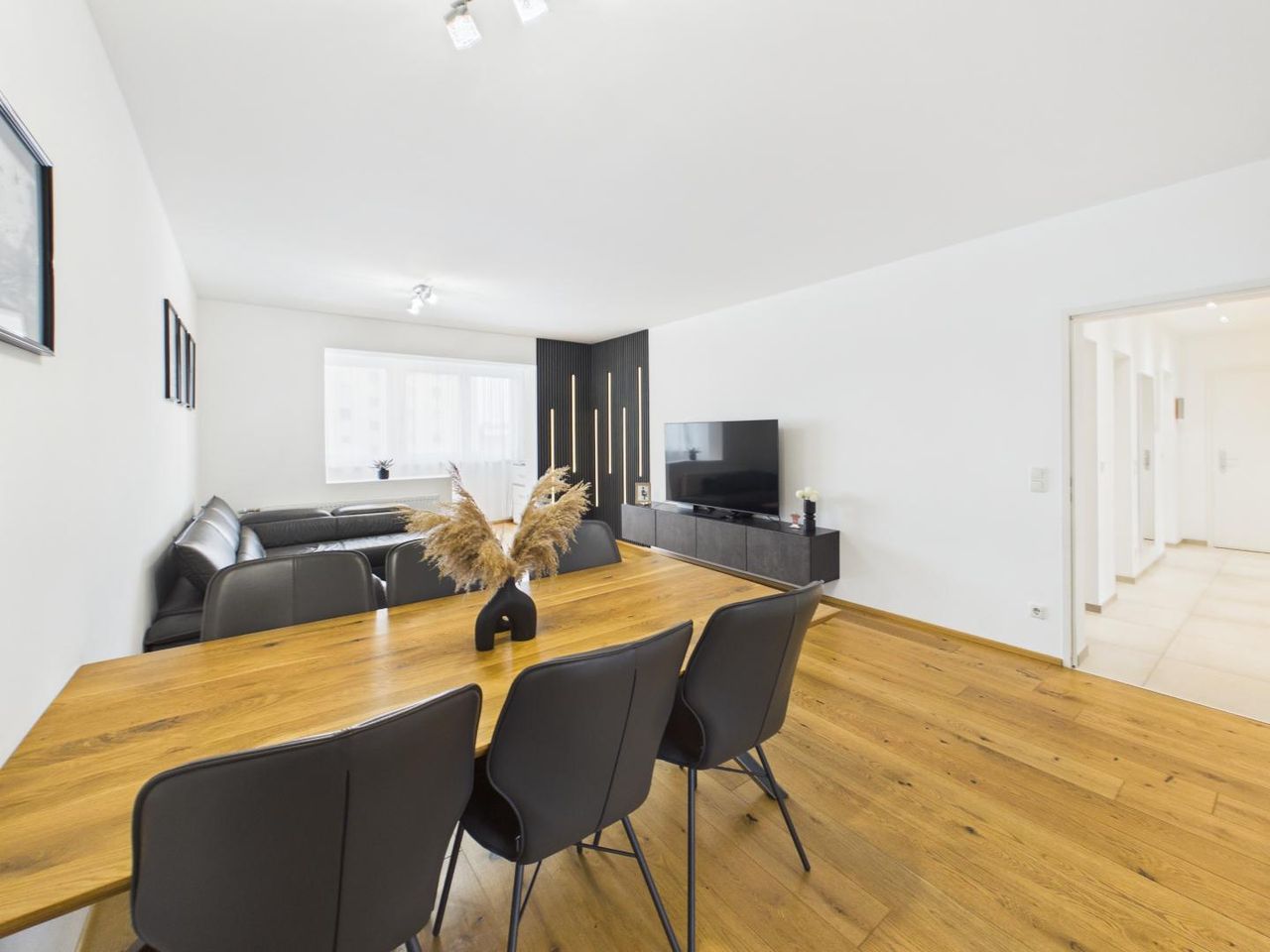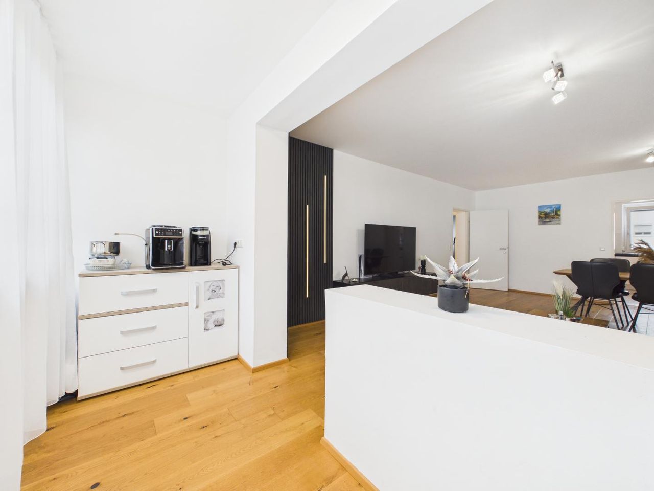 Schon beim Betreten zeigt sich der besondere Charakter der Wohnung: klare Linien, hochwertige Materialien und ein stimmiges Gesamtkonzept schaffen ein Wohngefühl, das zeitlos, modern und zugleich äußerst wohnlich ist.