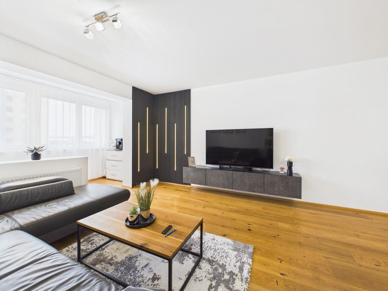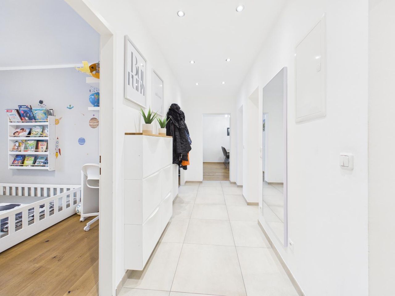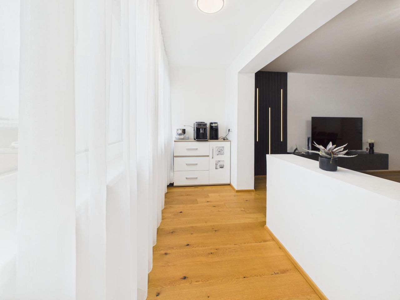 Schon beim Betreten zeigt sich der besondere Charakter der Wohnung: klare Linien, hochwertige Materialien und ein stimmiges Gesamtkonzept schaffen ein Wohngefühl, das zeitlos, modern und zugleich äußerst wohnlich ist.