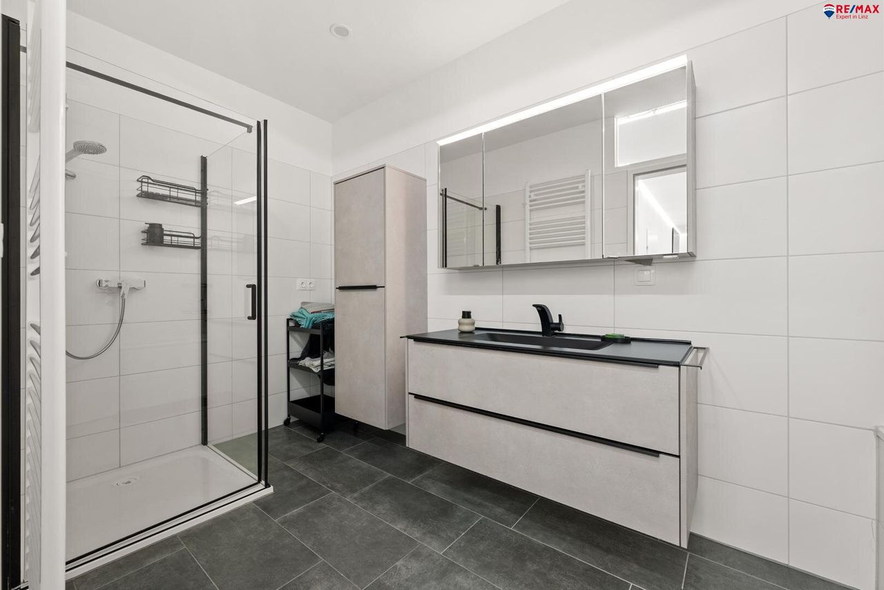 Im 1. Obergeschoss eines 2020 erbauten Mehrparteienhauses mit insgesamt 14 Wohnungen gelegen und bequem per Lift erreichbar, beeindruckt die Wohnung durch zeitlose Eleganz und hochwertigen Wohnkomfort.