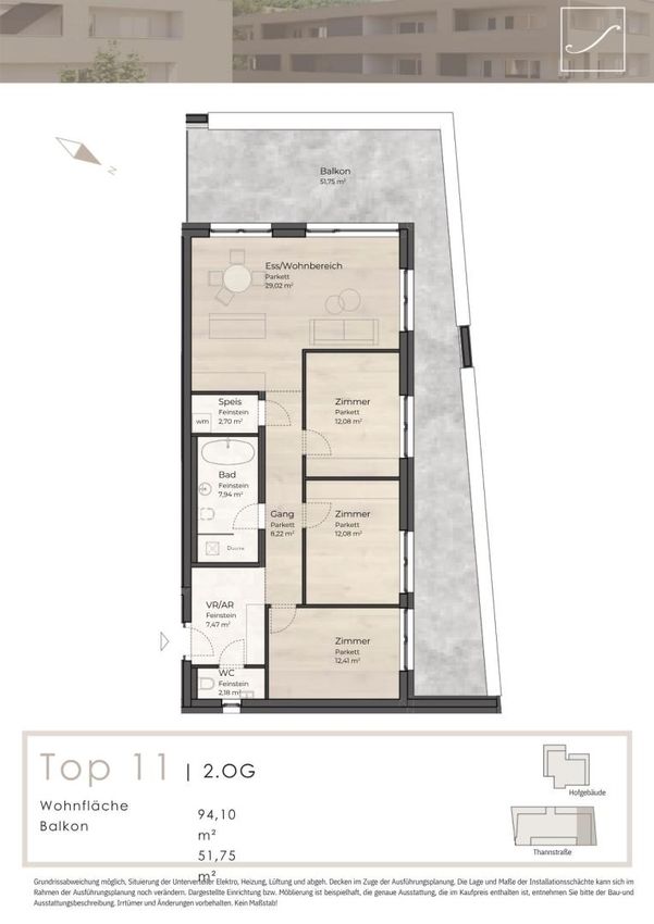 Diese Wohnung verbindet Alltagstauglichkeit mit Wohnkomfort. Viel Platz und eine ganztägig privat nutzbare Freifläche sorgen unteranderem für eine hohe Wohnqualität.